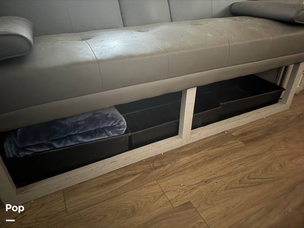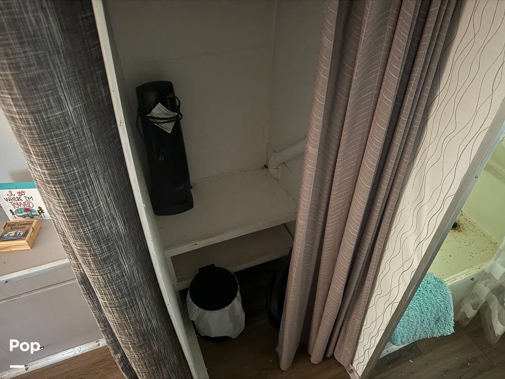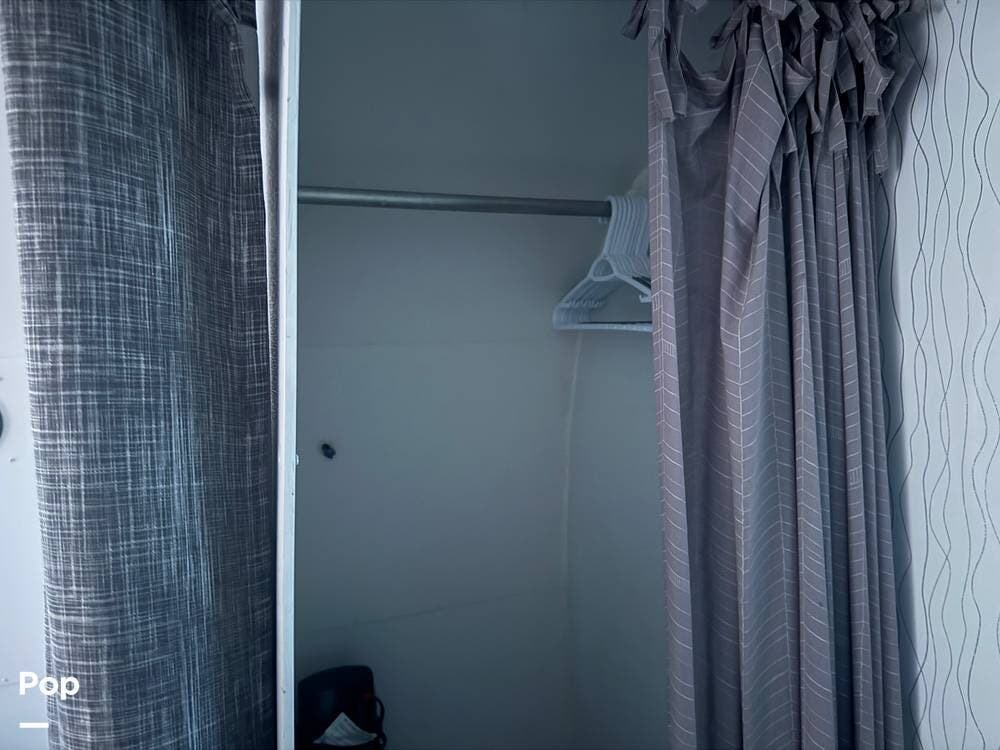 Just past the entryway, the front queen bed anchors the space, offering comfortable sleeping accommodations with overhead storage.