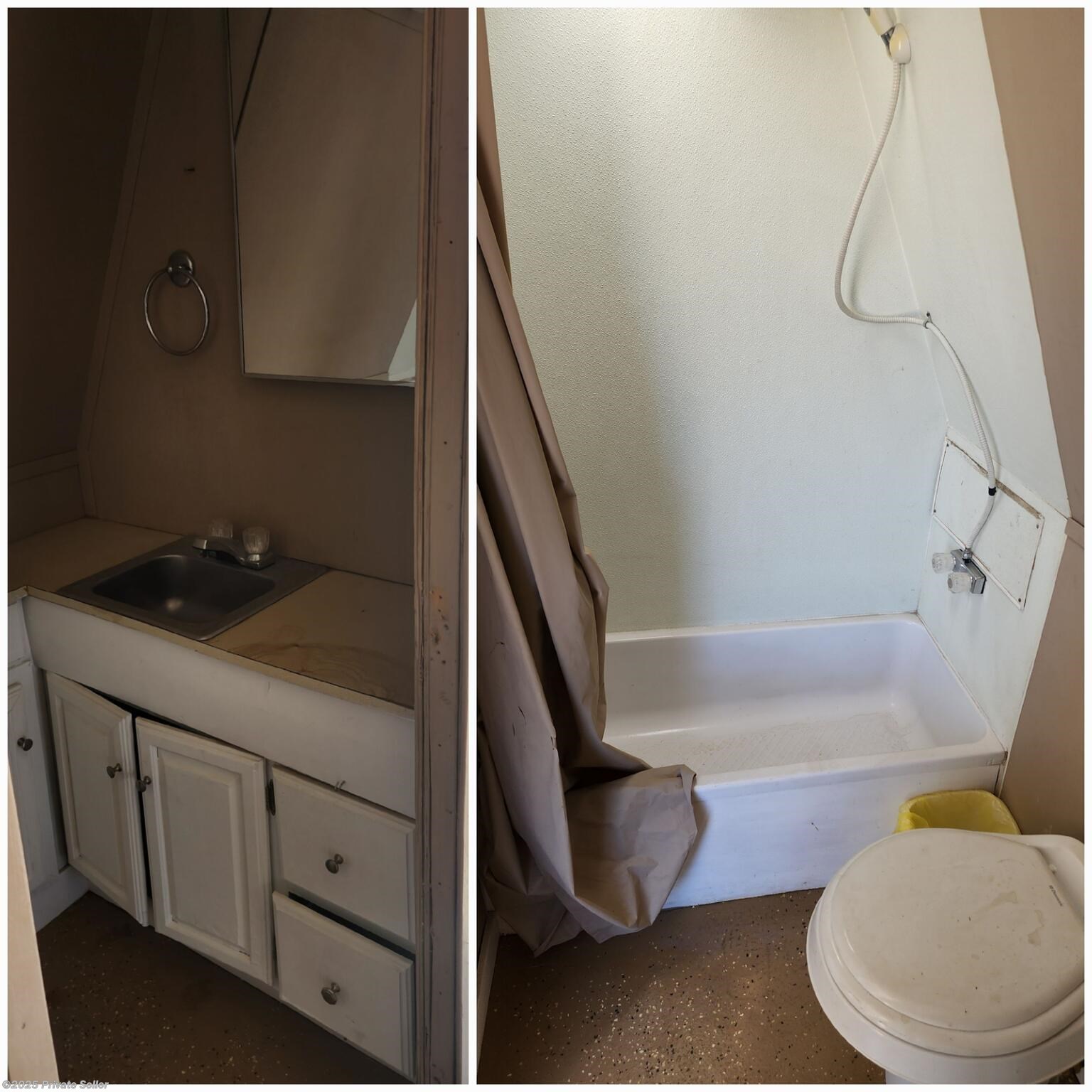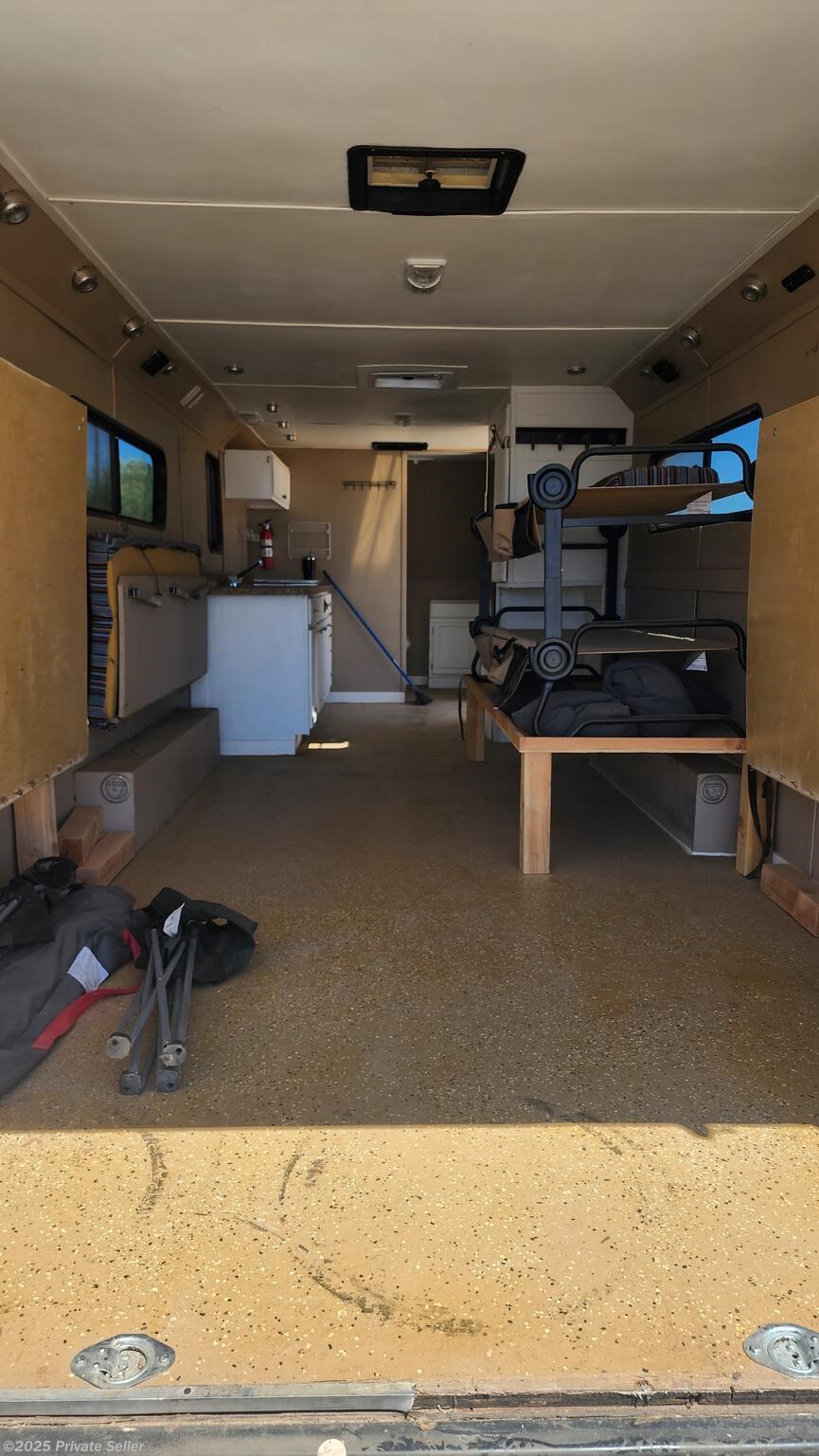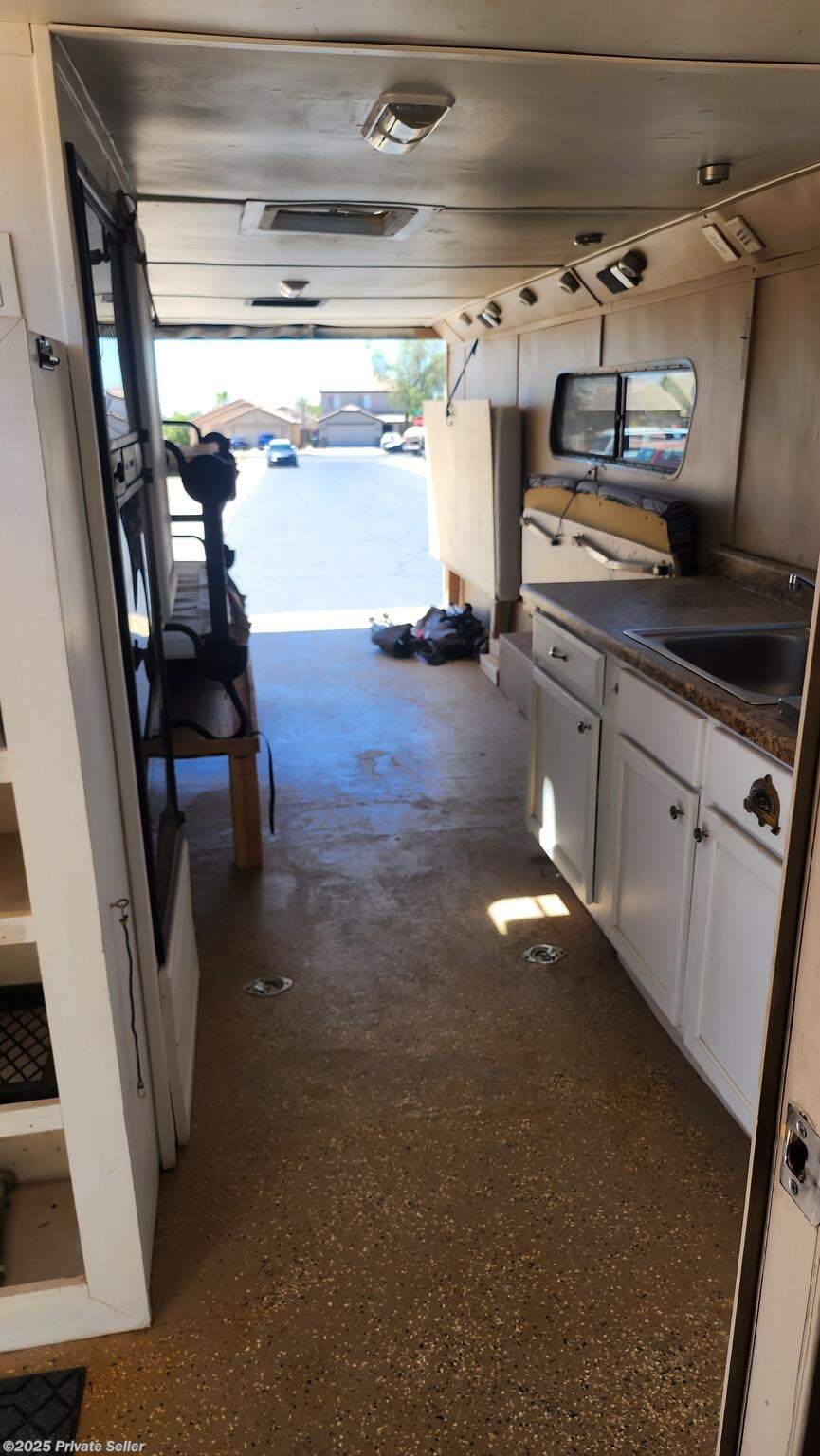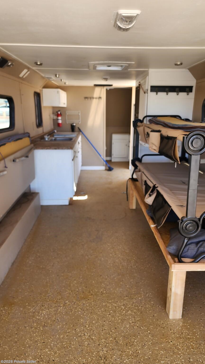 We purchased this camper as a project, but never found the time to work on it. She’s an older model, but everything is in good working order—fridge, water, electric, and toilet all function as they should. The bed frame in the back was custom-built by the previous owner, though the feet could use some reinforcement. Please note: The bunks shown in the photos are not included, but we wanted to show how the platform is set up.