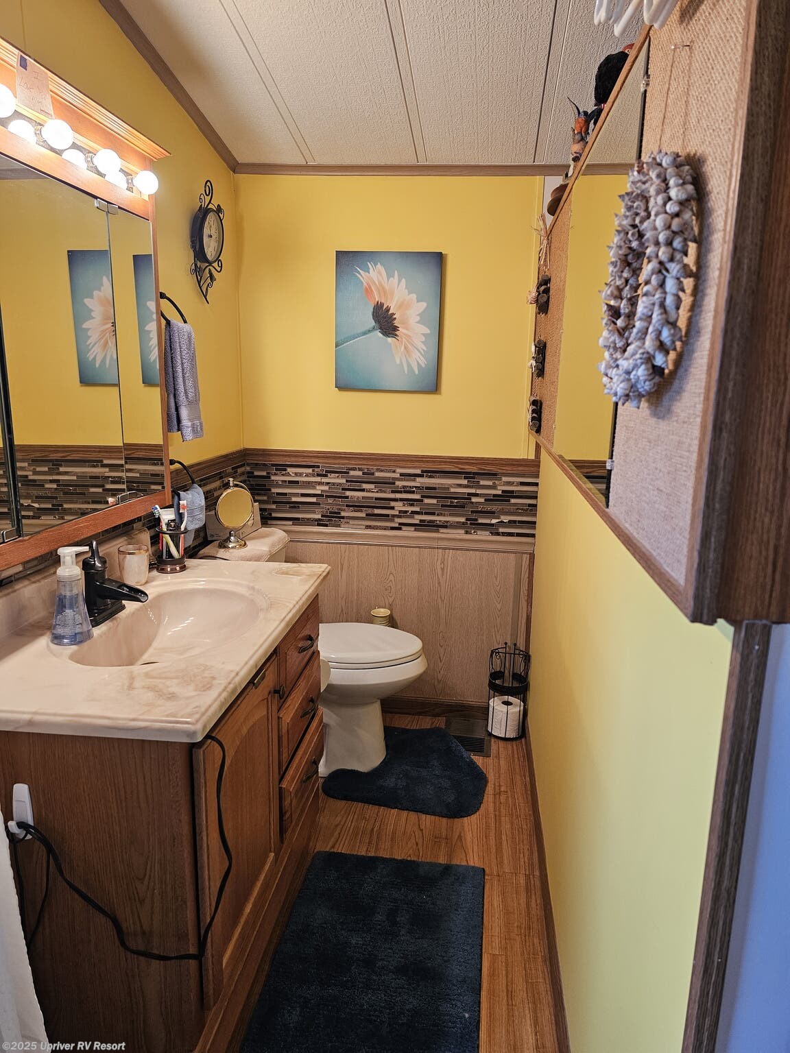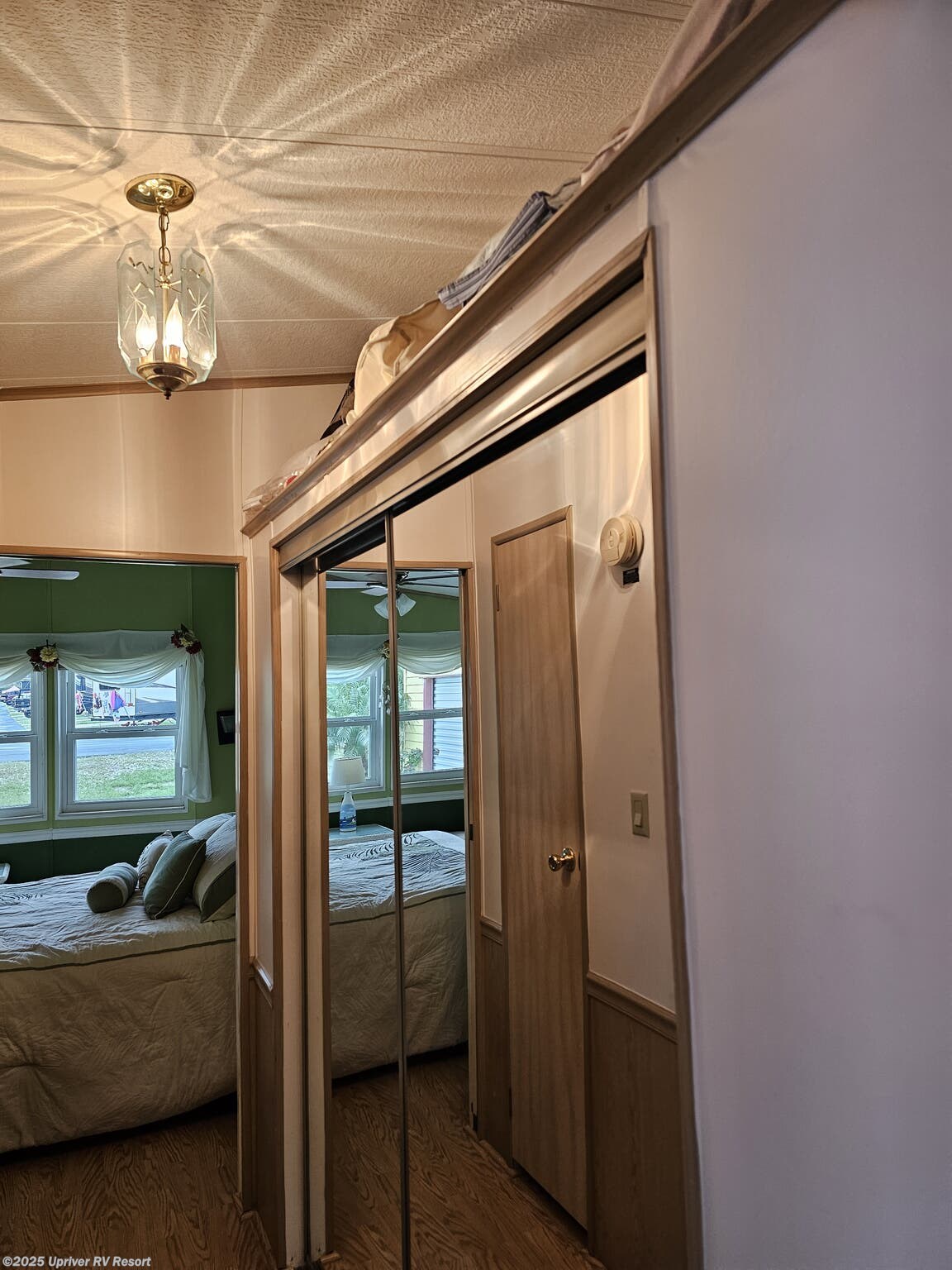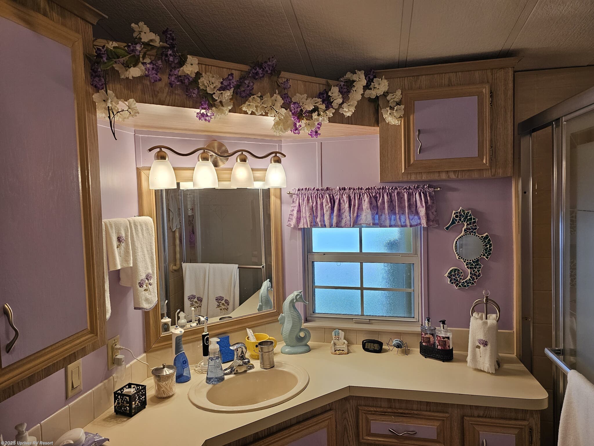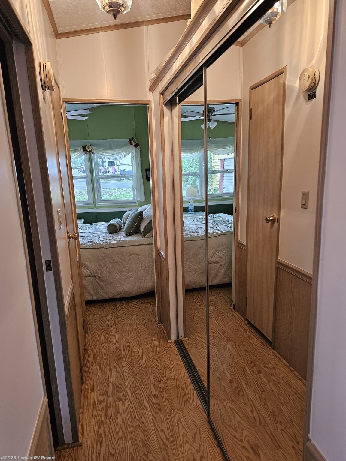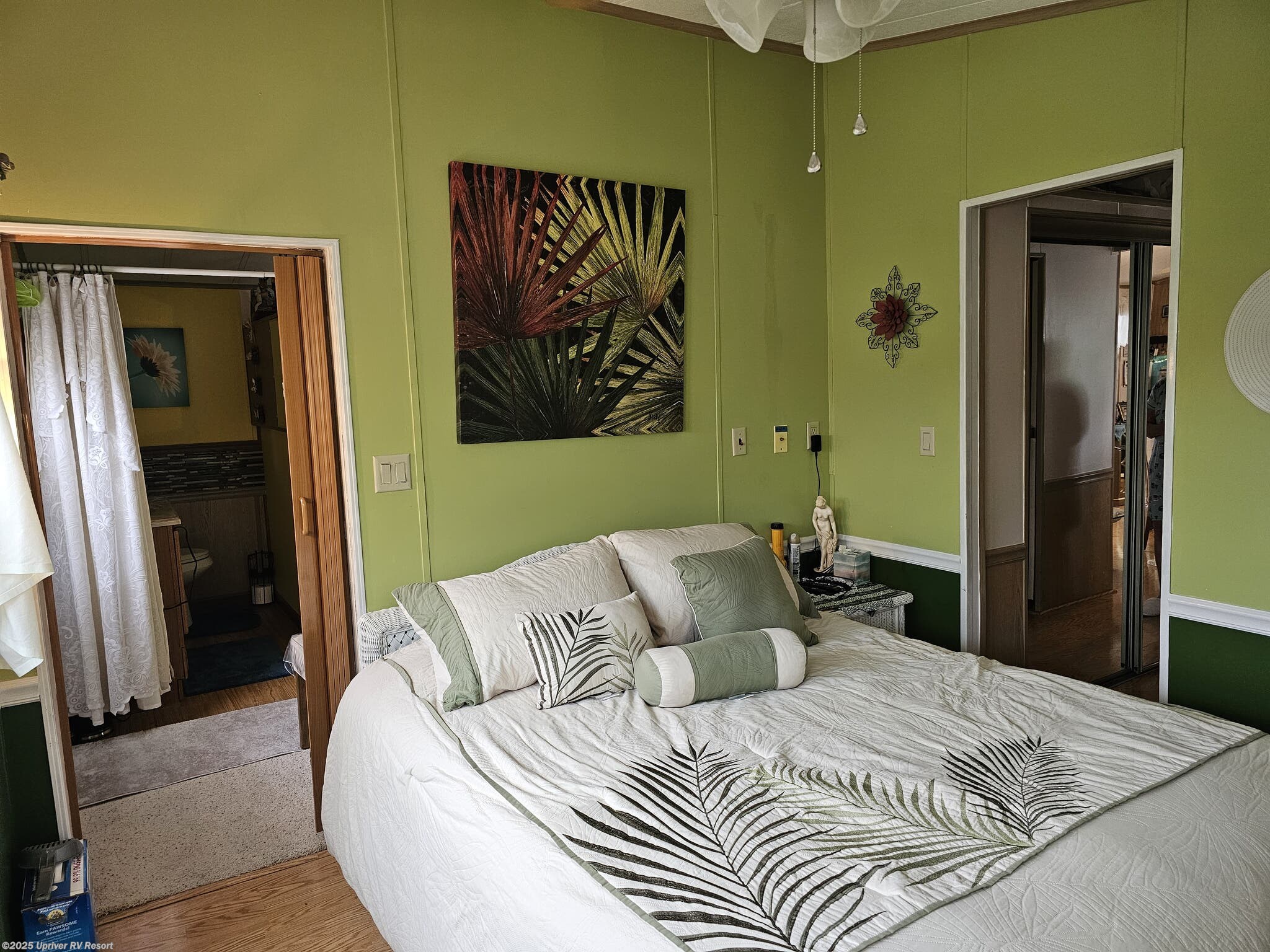 Inside has 1 plus bedrooms, you can either use for a bedroom,den or expand to open up the home more, 1 1/2 baths. Water heater and refrigerator are 5 years old, dishwasher is 4 years old, electric flat top stove with oven and microwave/convection ovens are nes, ceiling fans in every room, A/C 10 years old and maintained twice a year with paperwork,also just installed an ultraviolet light to protect against mold and recently installed a surge protector on it. Home was freshly painted 3 years ago along with new windows in rear bedroom with hurricane shutters, all windows except kitchen tilt inward for easy cleaning. All windows are protected with hurricane shutters. Home will include washer, dryer, front room TV with stand, back bedroom TV on wall, Kitchen Island, and curtains, dining room table and 6 chairs and the bed in primary bedroom. Taking only personal belongings.1991 Chariot Features