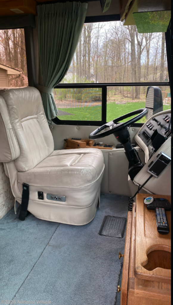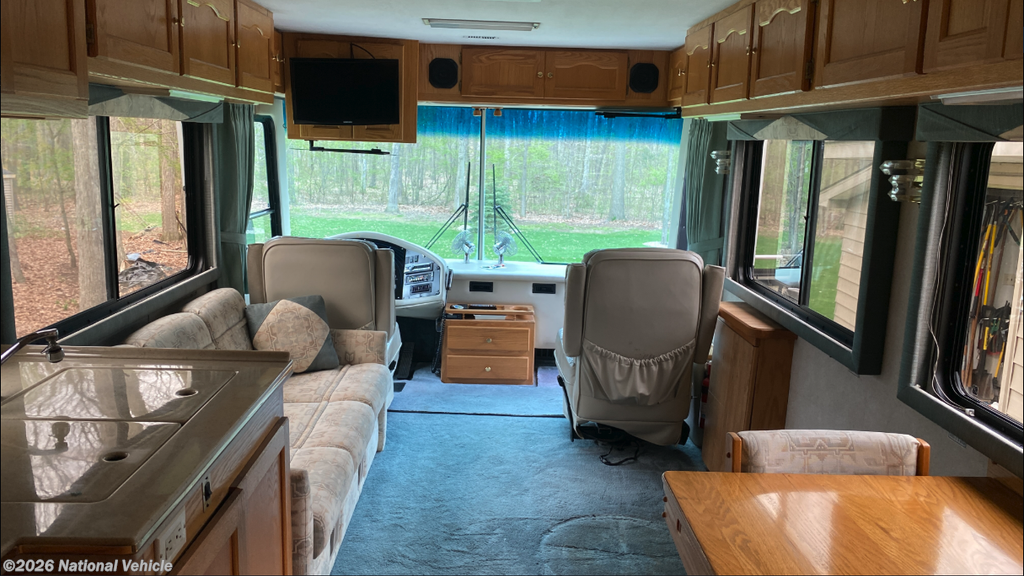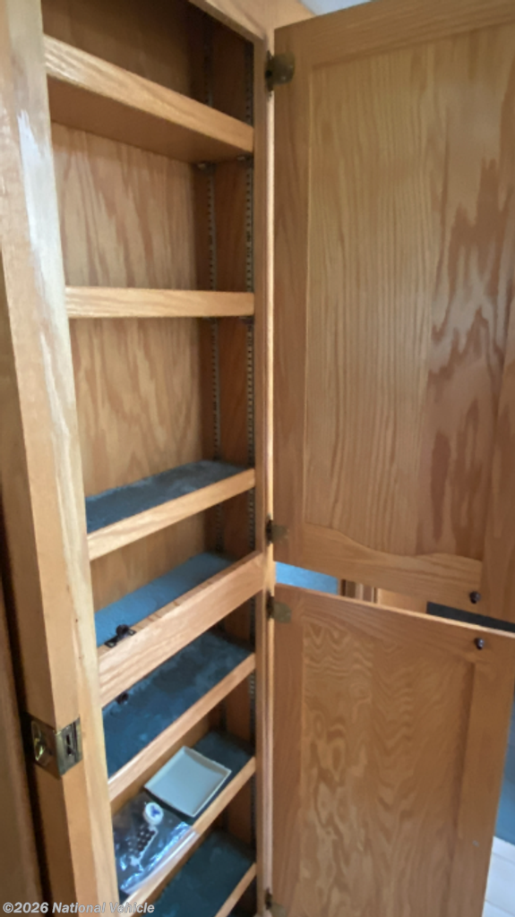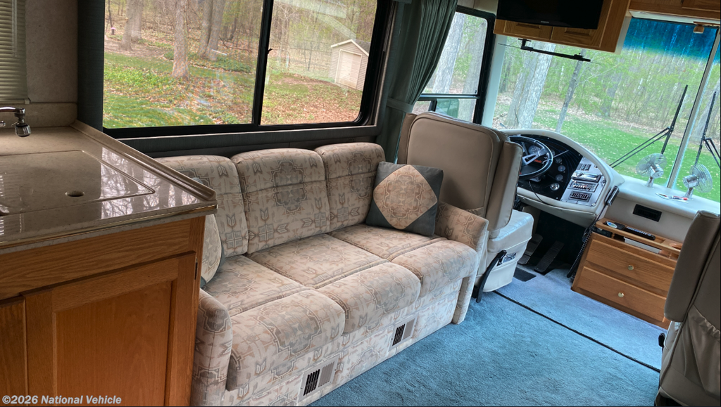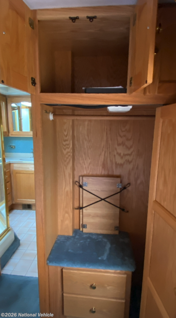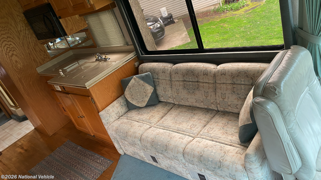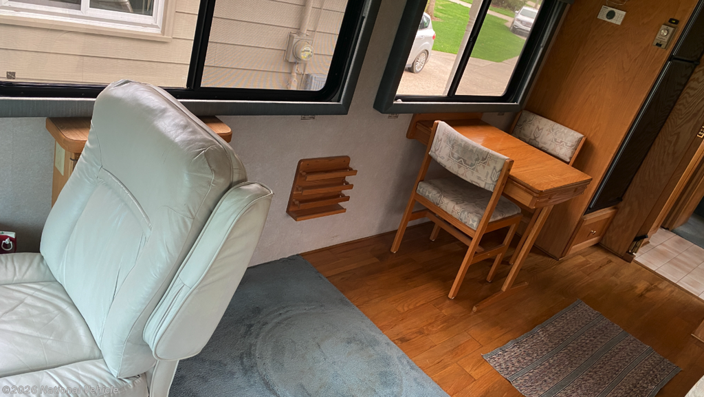 This is a true two-owner coach, originally purchased with just 12,000 miles, and it has been cared for with pride ever since. Inside, you?ll find a spacious and thoughtfully designed layout featuring double closets, abundant cabinet storage, and quality finishes throughout. Captain's chairs are leather and very comfortable. The living area offers a comfortable sofa sleeper and a dining table with chairs?perfect for entertaining or unwinding after a day on the road.