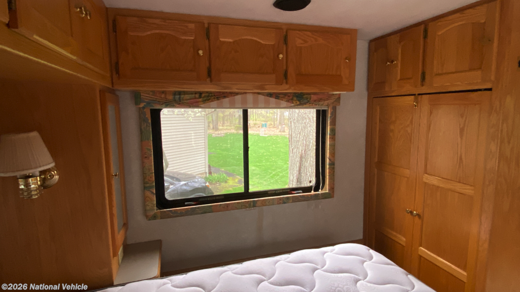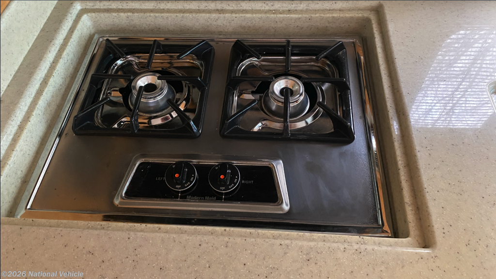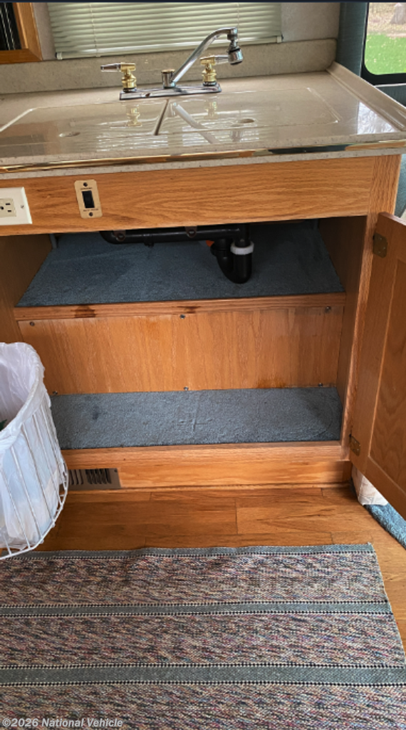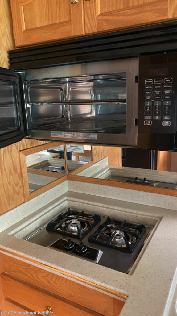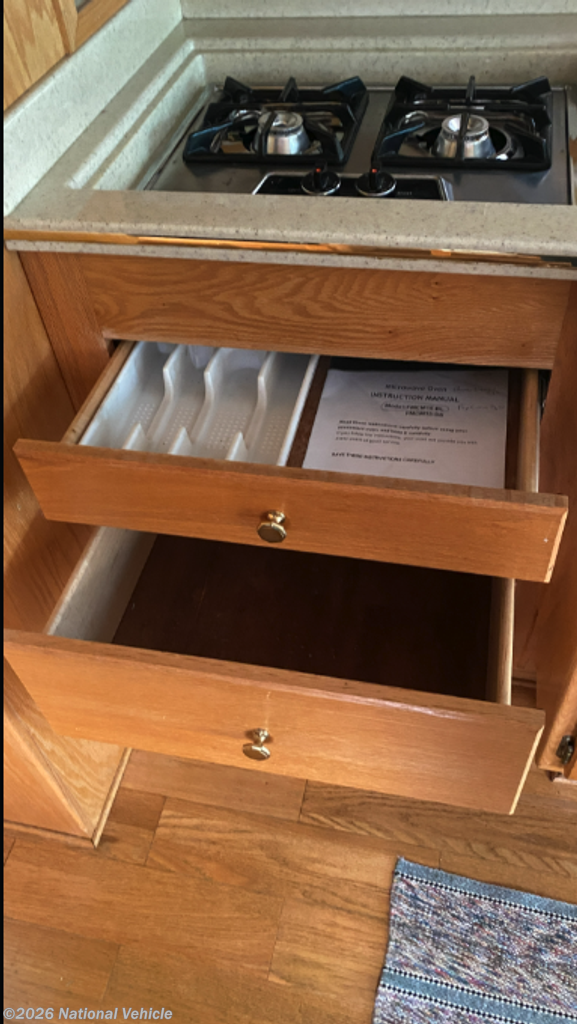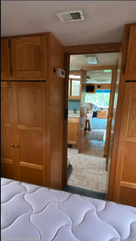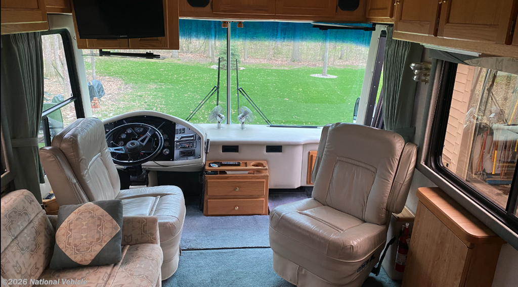 This is a true two-owner coach, originally purchased with just 12,000 miles, and it has been cared for with pride ever since. Inside, you?ll find a spacious and thoughtfully designed layout featuring double closets, abundant cabinet storage, and quality finishes throughout. Captain's chairs are leather and very comfortable. The living area offers a comfortable sofa sleeper and a dining table with chairs?perfect for entertaining or unwinding after a day on the road.
