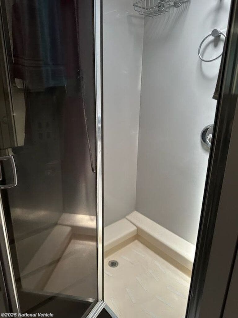 This coach features a bathroom complete with shower, toilet, and a sink with a medicine cabinet above for your convenience.