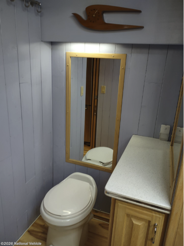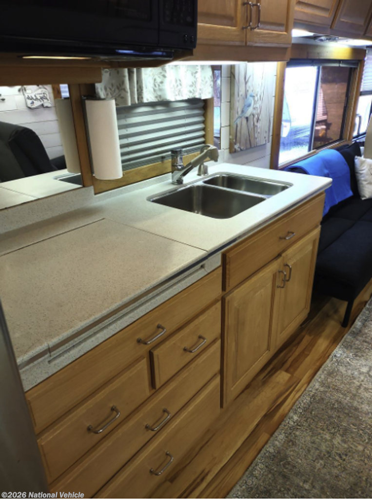 This vintage Bluebird runs fine and has a newly remodeled interior. Original 8.3 Cummins Turbo Diesel, 350 HP, uprated by Cummins to 325 HP, 915 ft-lbs of torque in 2001 (done by Cummins Metro Power in Rocky Hill, CT). Allison 6-speed MD 3060 World electronic transmission with electronic shifter. Air brakes, air ride suspension, electronic 4-point auto leveling system, 10-KW diesel generator, 160-amp alternator, inverter/charger, 50-amp electrical service, 45- gallon propane tank, 150-gallon diesel fuel tank, 5-gallon electric hot water heater, 50-gallon freshwater tank.