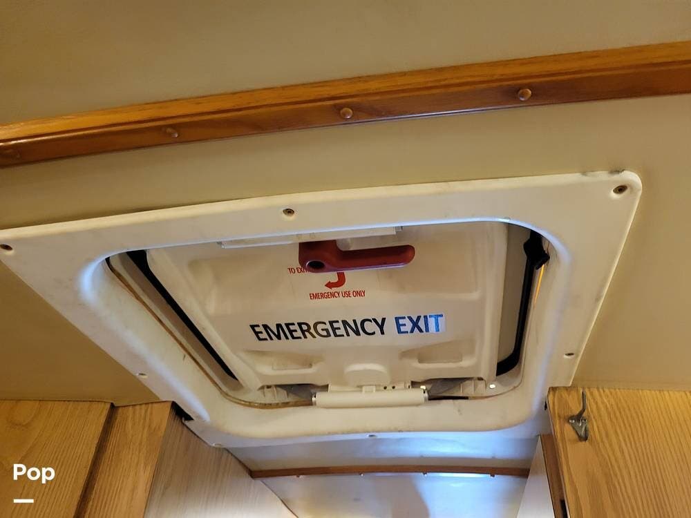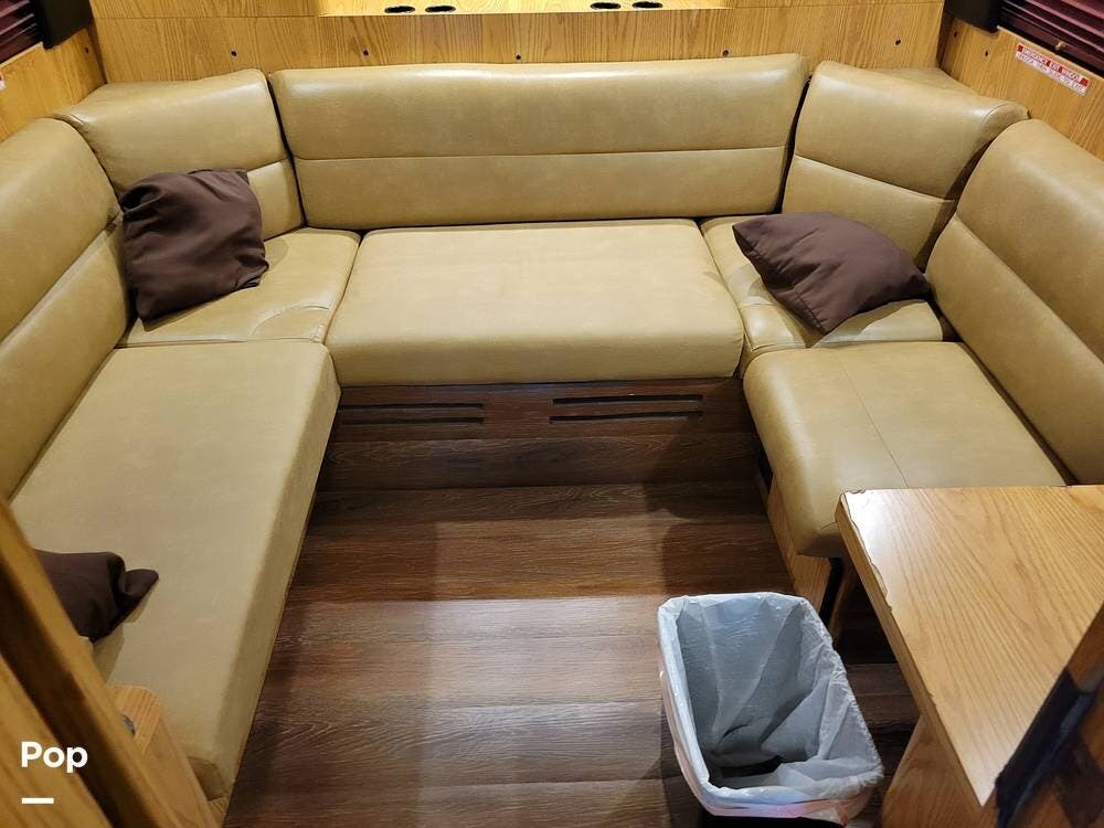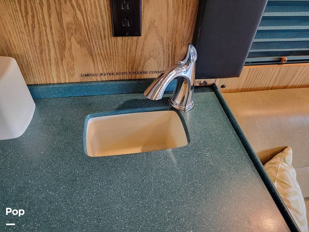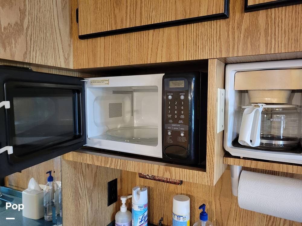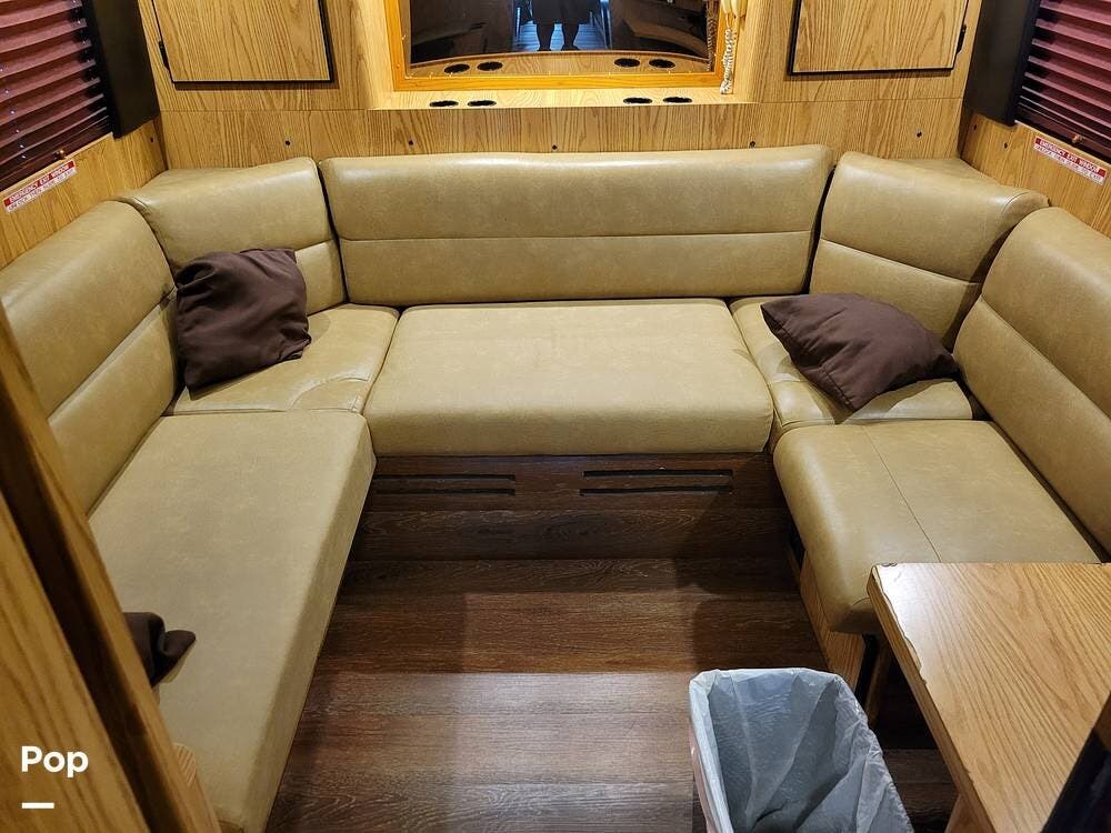 She has a kitchen with a microwave, sink, refrigerator with a freezer, dinette, and plenty of counter and cabinet space. She also has, in addition to the 12 beds, a 1/2 bath and a rear lounge area.