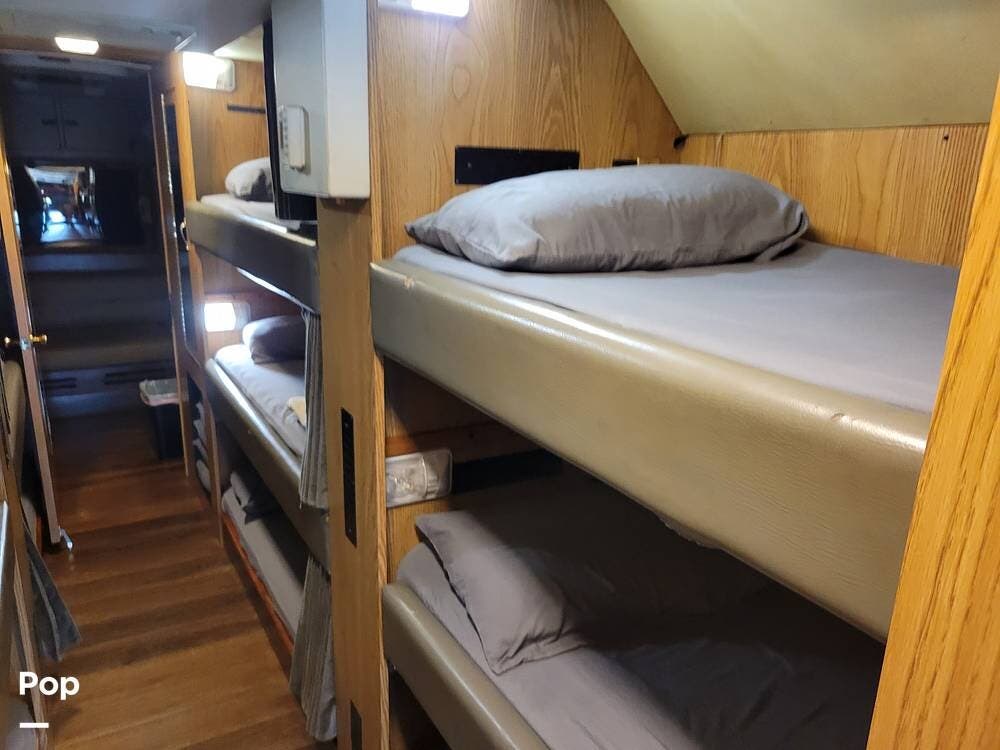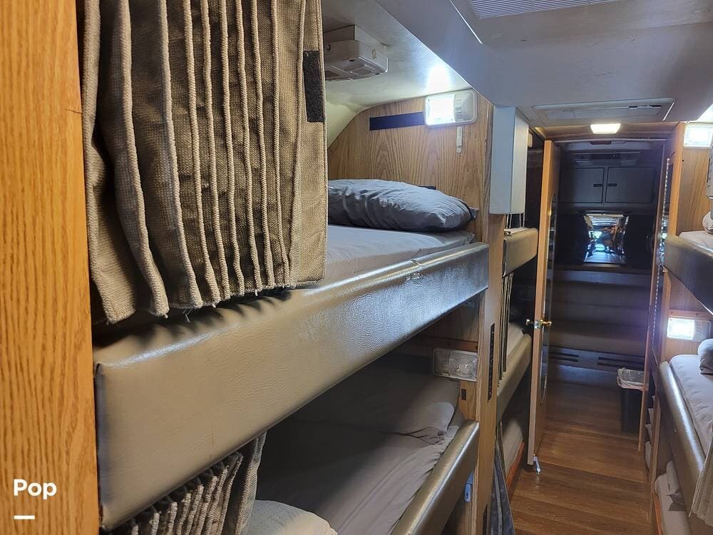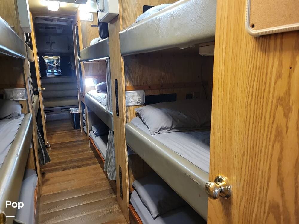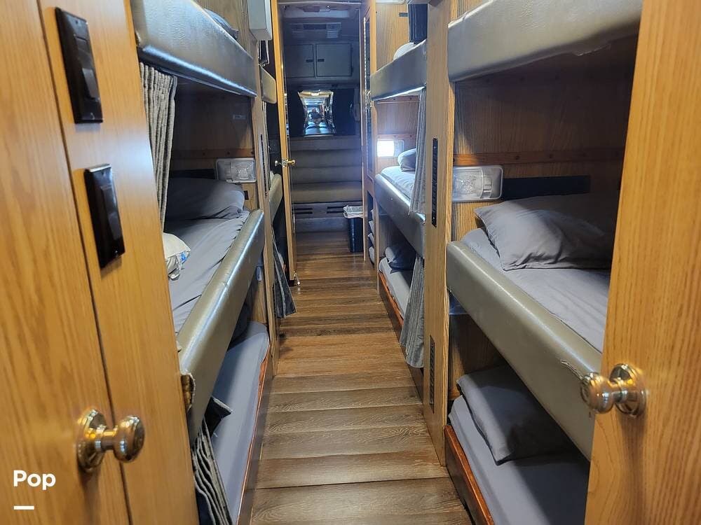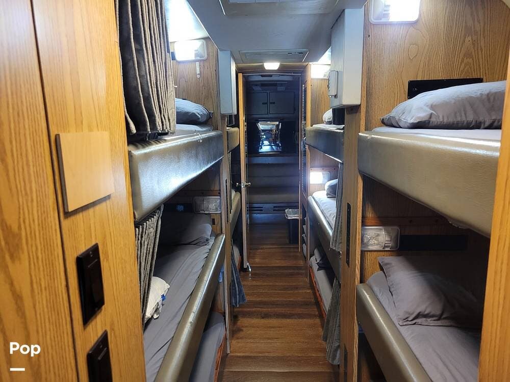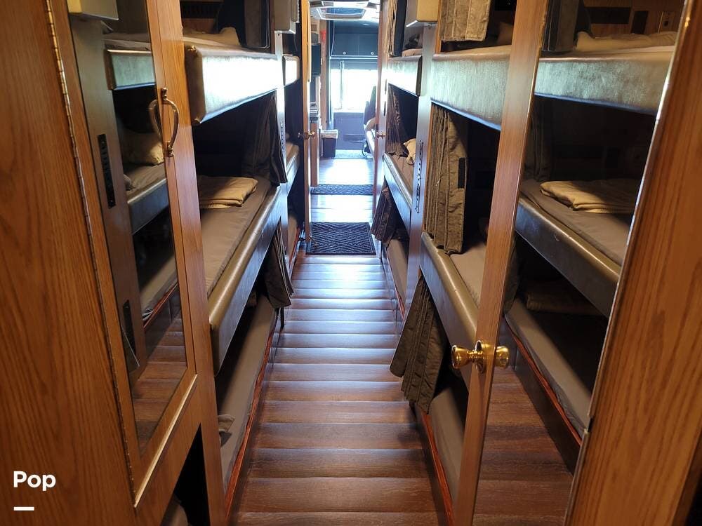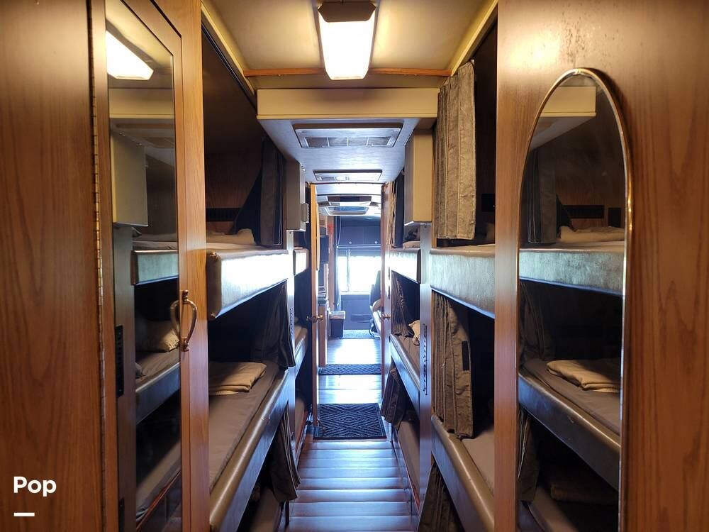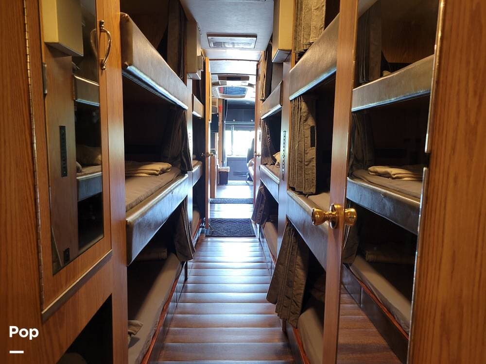 Great for touring bands or other adventurers, this entertainer's bunkhouse tour bus accommodates 12.