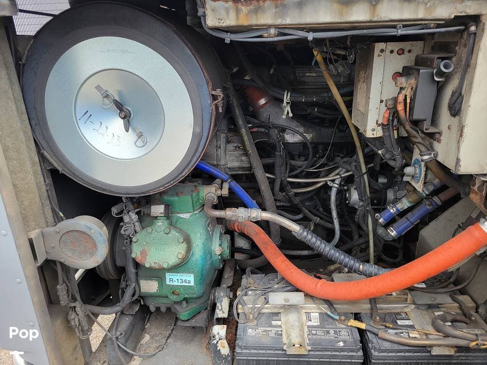 The coach features four ACs with heat, a Kubota generator, two 8D house batteries, one generator battery, and four 3100 Series engine batteries.