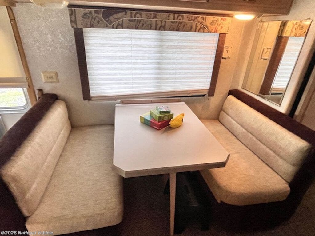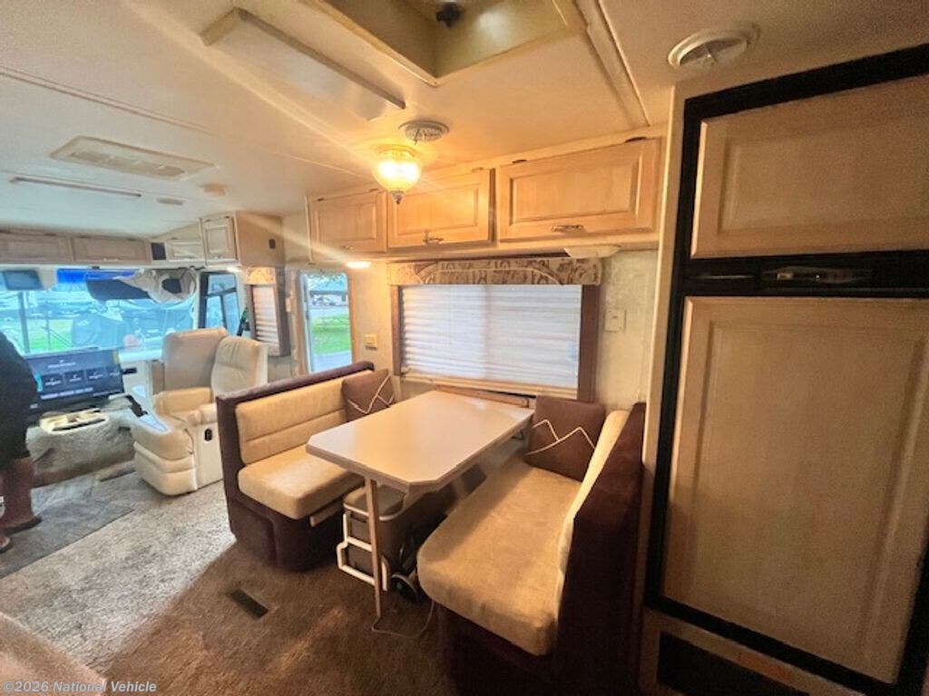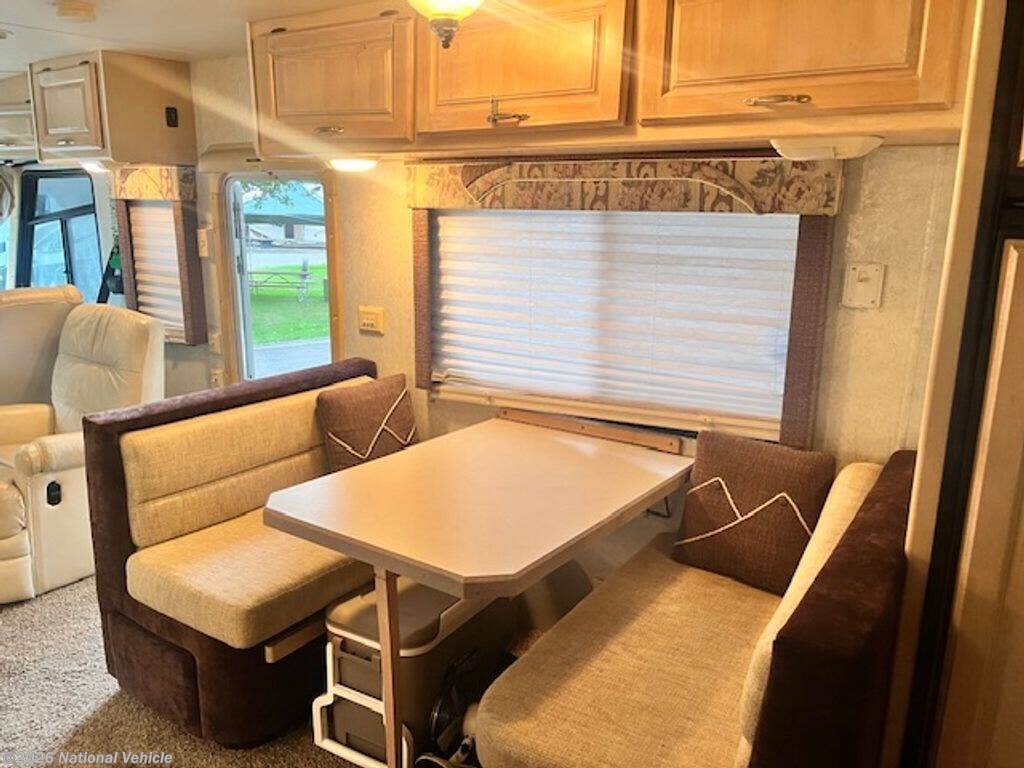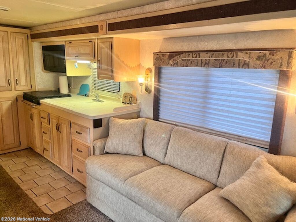 Step inside and take a look back at all of the convenient features that would make any journey enjoyable. The kitchen area features everything you need to prepare great meals on the go including a sink, a three burner range with microwave, oven, and a refrigerator/freezer. There is also plenty of storage for all of your dry and canned goods. Have a seat at the comfortable dinette, where you can enjoy meals with your family.
