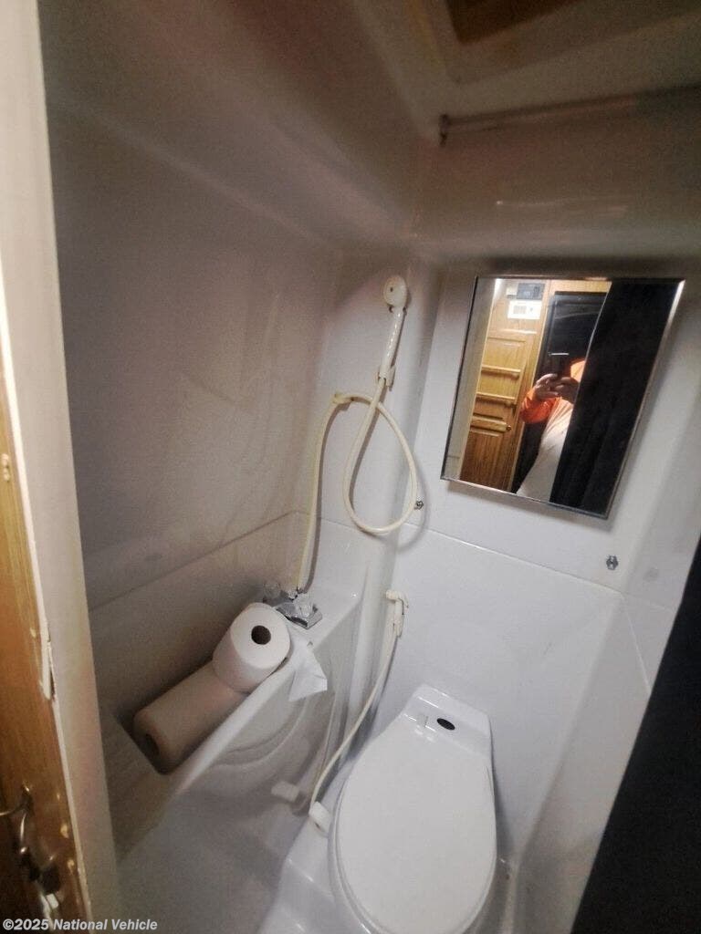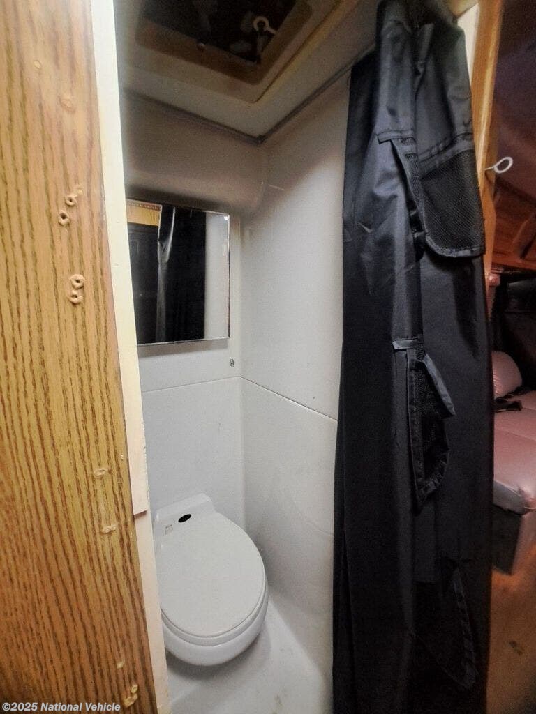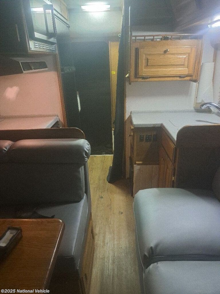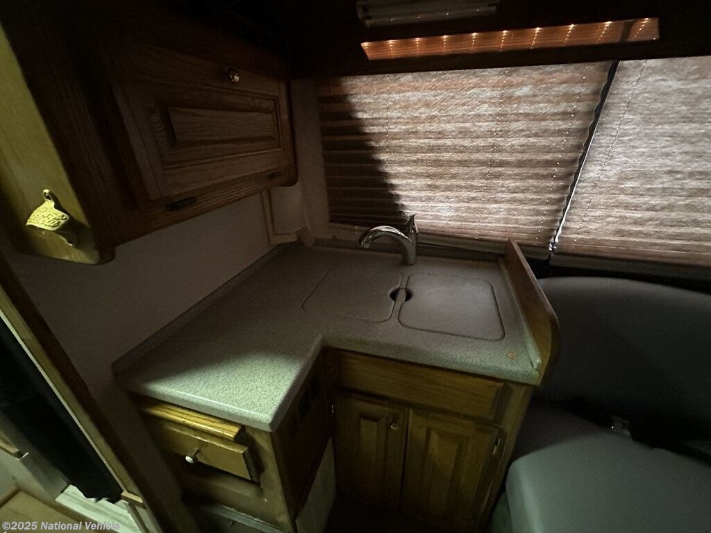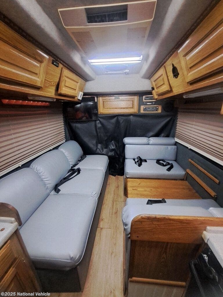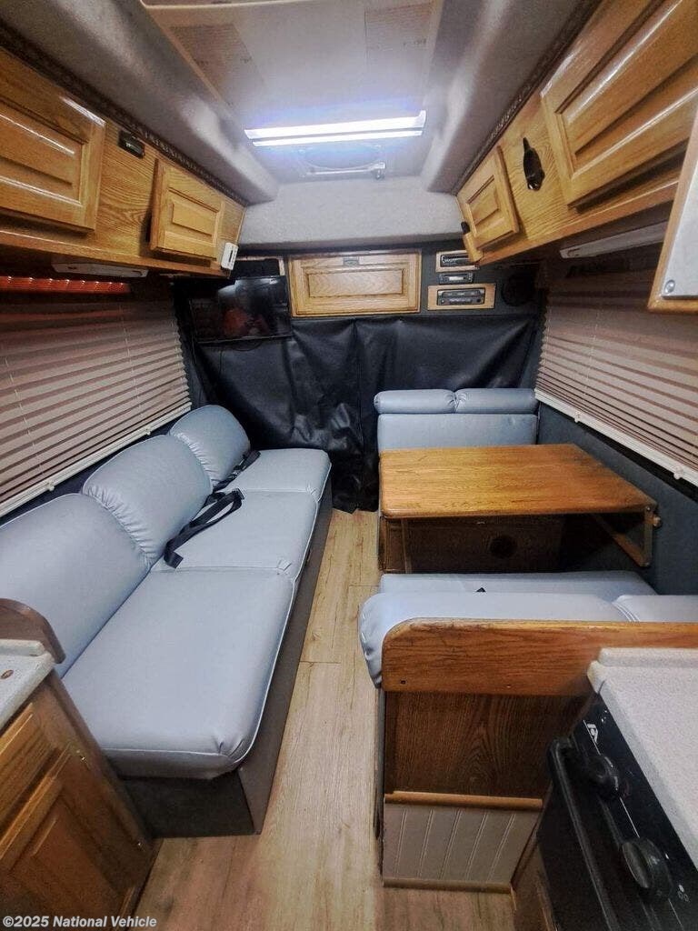 Inside, this thoughtfully designed coach offers a surprisingly spacious layout, featuring a convertible rear lounge or sofa-to-bed setup that maximizes comfort and flexibility. The fully equipped galley includes a cooktop, microwave, refrigerator, and generous storage, making meal prep simple on weekend trips or extended adventures. A well-appointed wet bath provides all the essentials without wasting space, and panoramic windows fill the cabin with natural light.