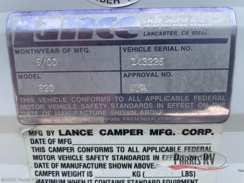Request More Info on this 2000 Lance Lance 820 Offered for sale by Parris RV