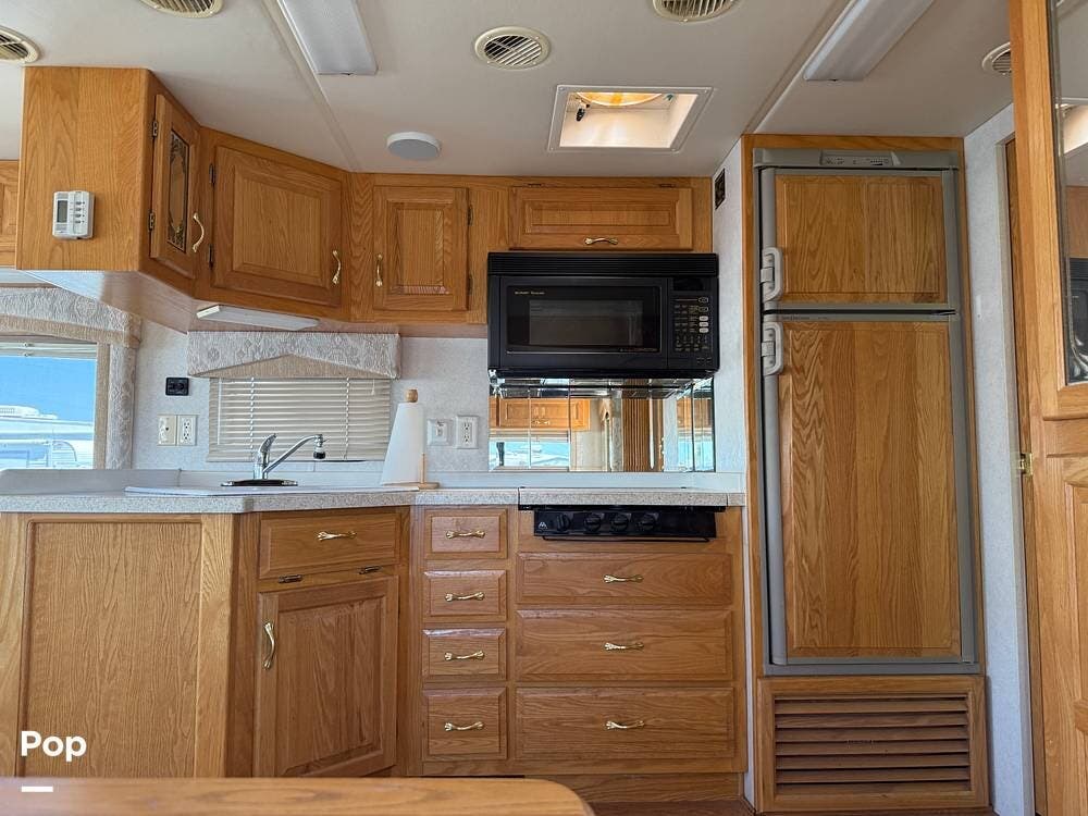 The interior millwork is finely jointed with a finished stain, giving a comfortable and warm feeling that you never left home while traveling on the road.
