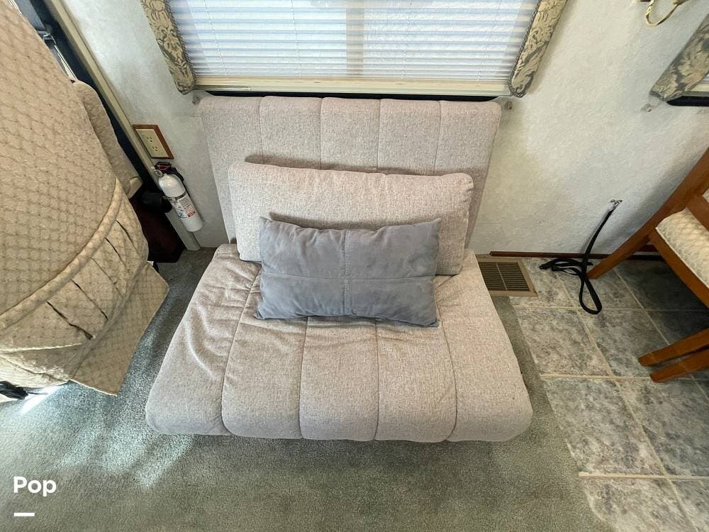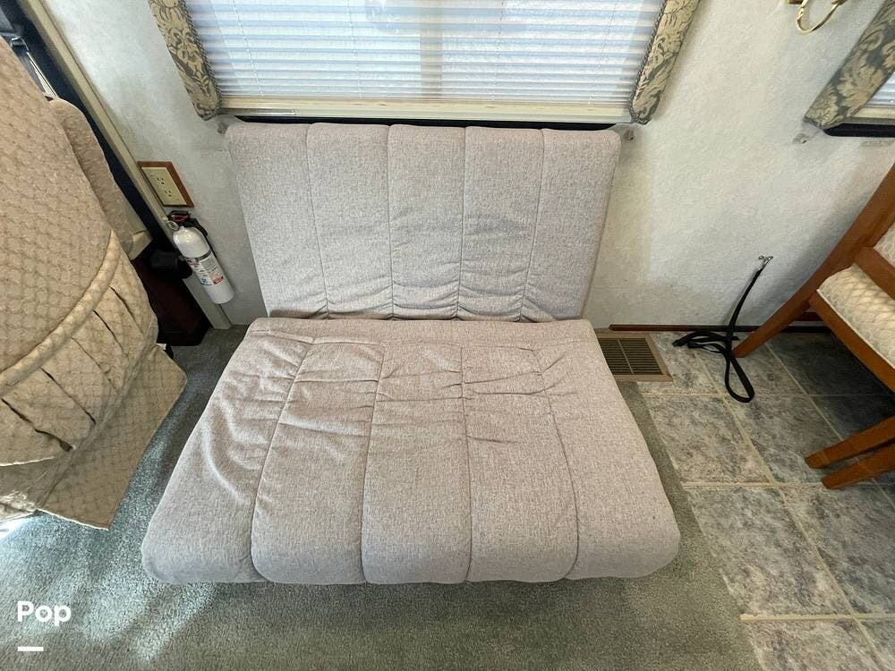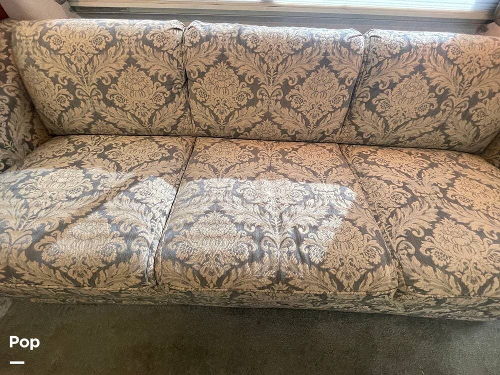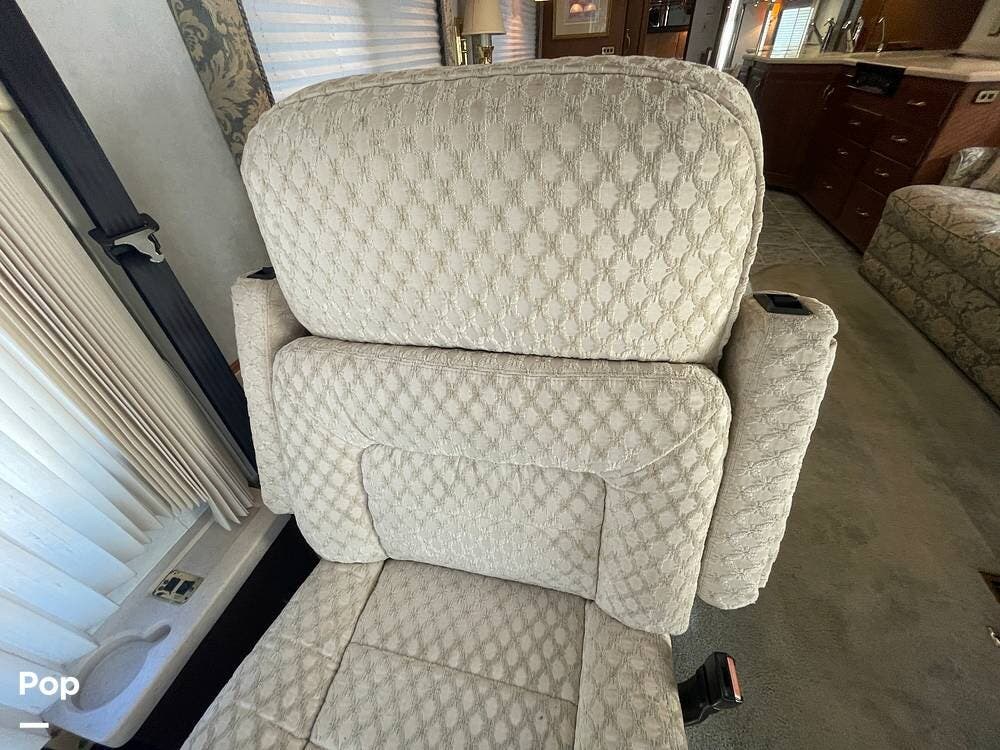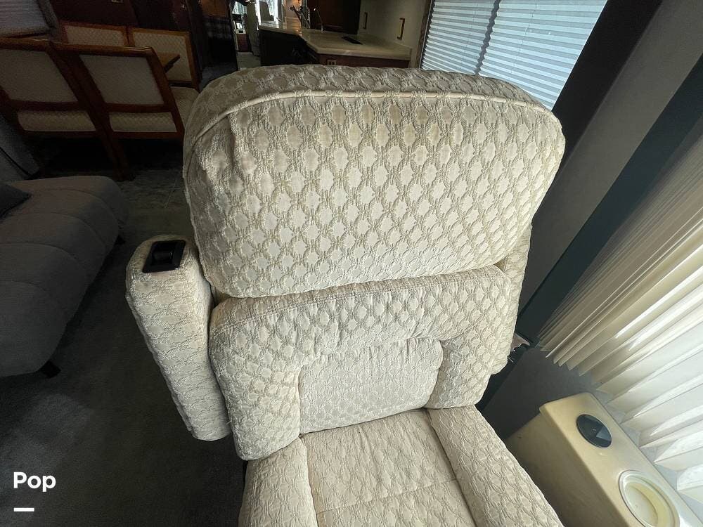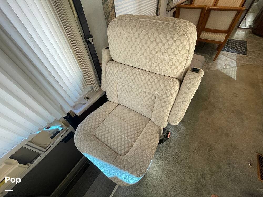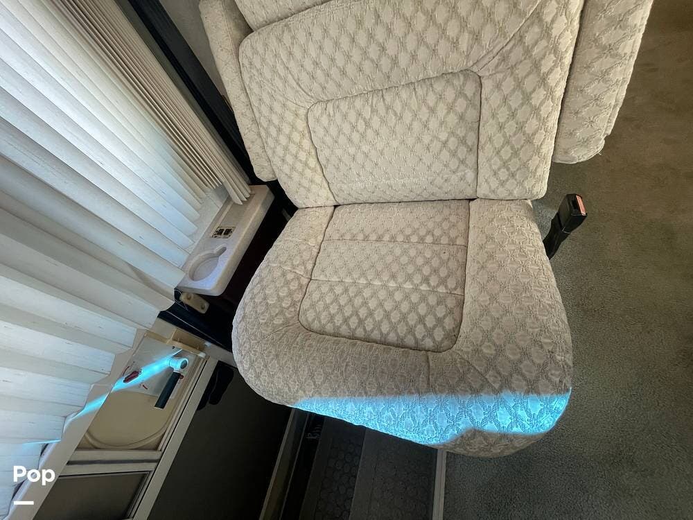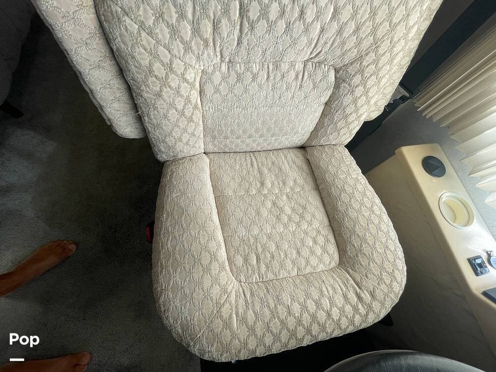Just behind the passenger swivel captain's chair is a newer sofa chair that replaces the recliner and pull-out table.