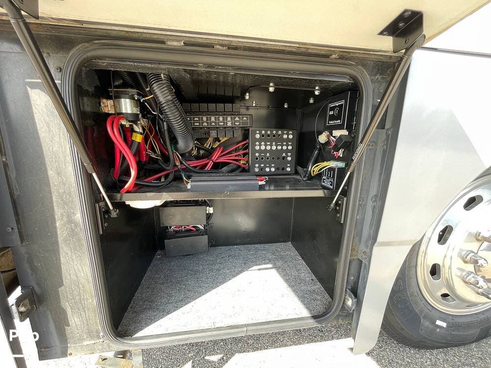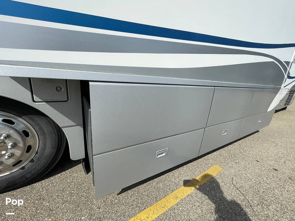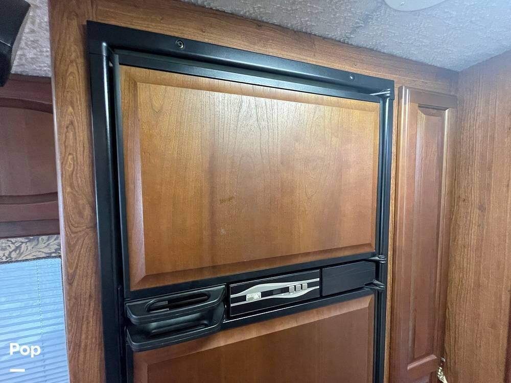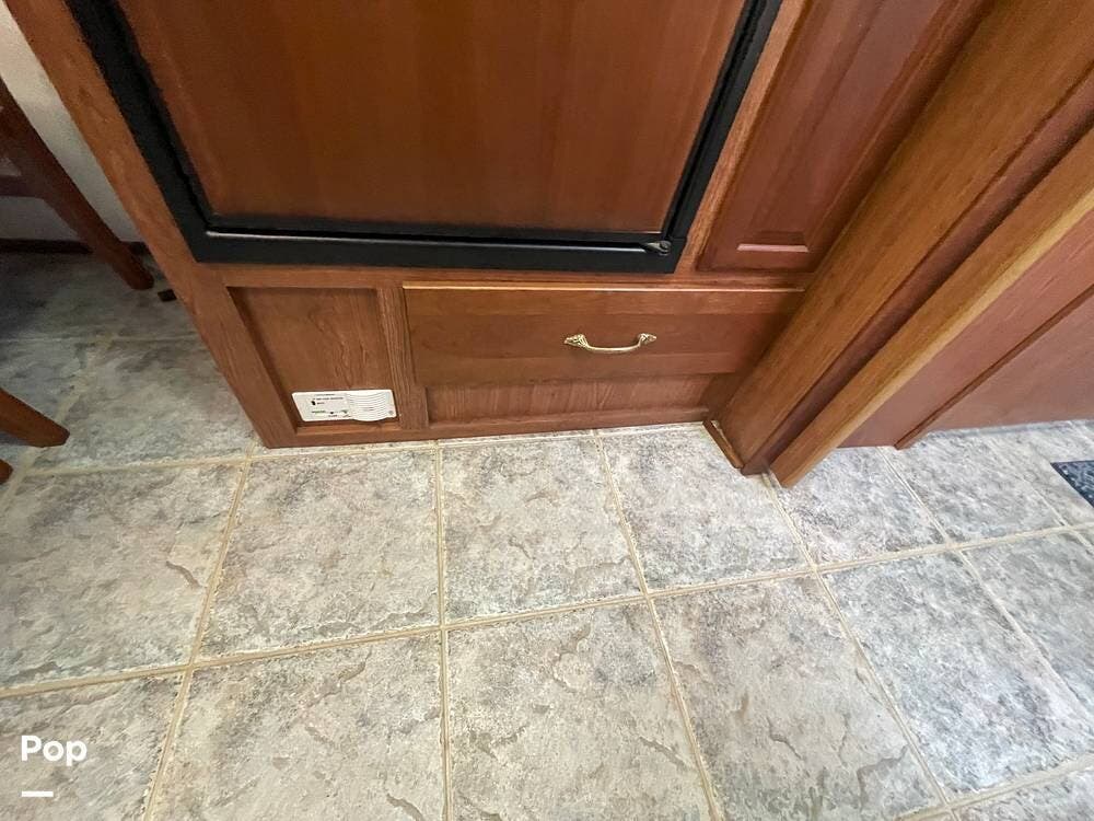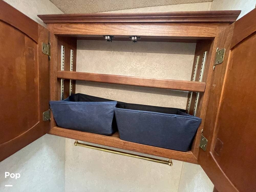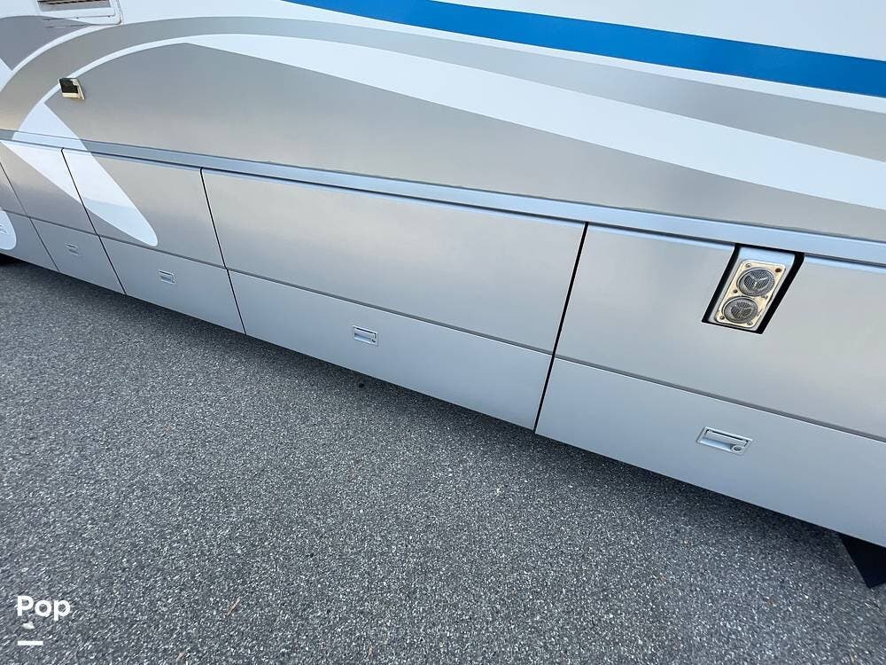 The Interior of the coach features solid wood dovetailed cabinet drawers, slide and rail cabinet door with raised panel inserts, solid surface countertops, and premium flooring.