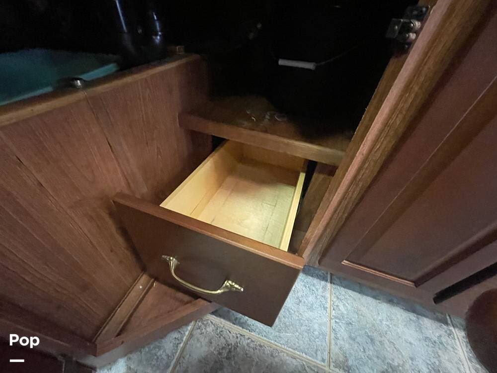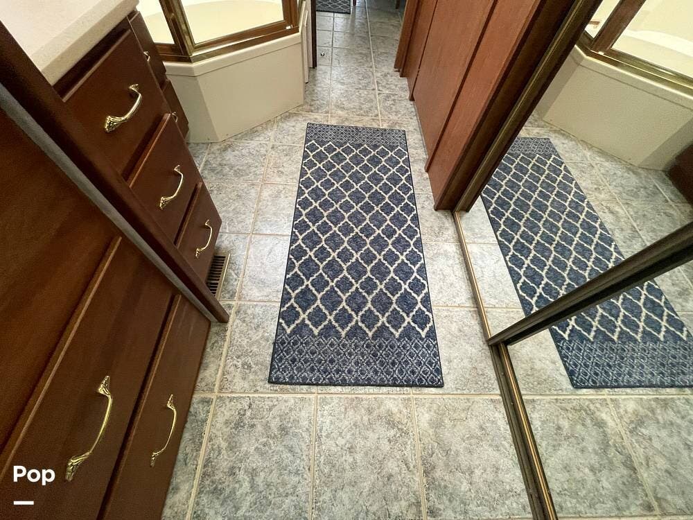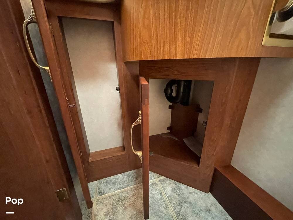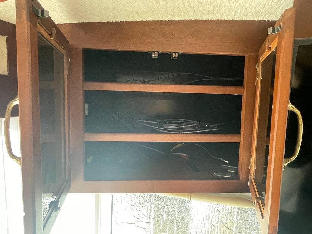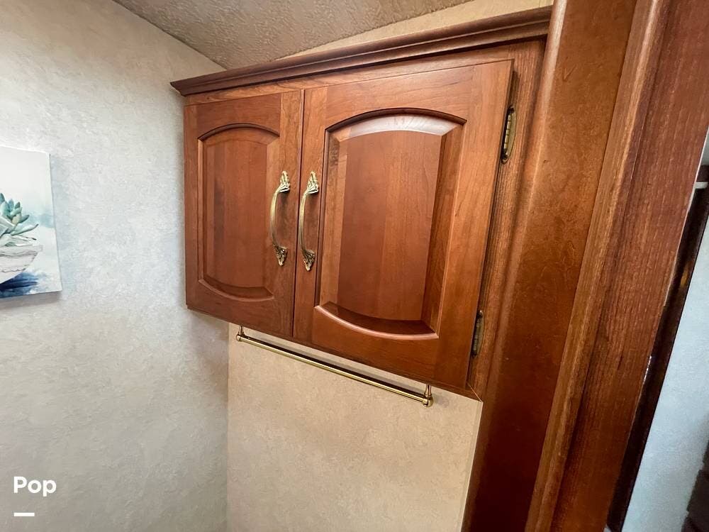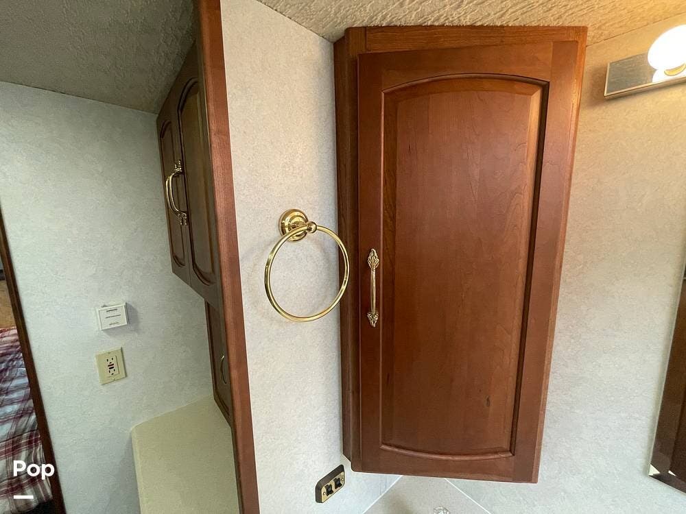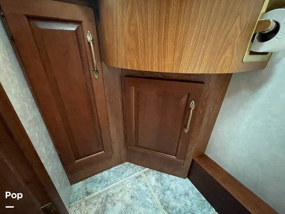 The Interior of the coach features solid wood dovetailed cabinet drawers, slide and rail cabinet door with raised panel inserts, solid surface countertops, and premium flooring.