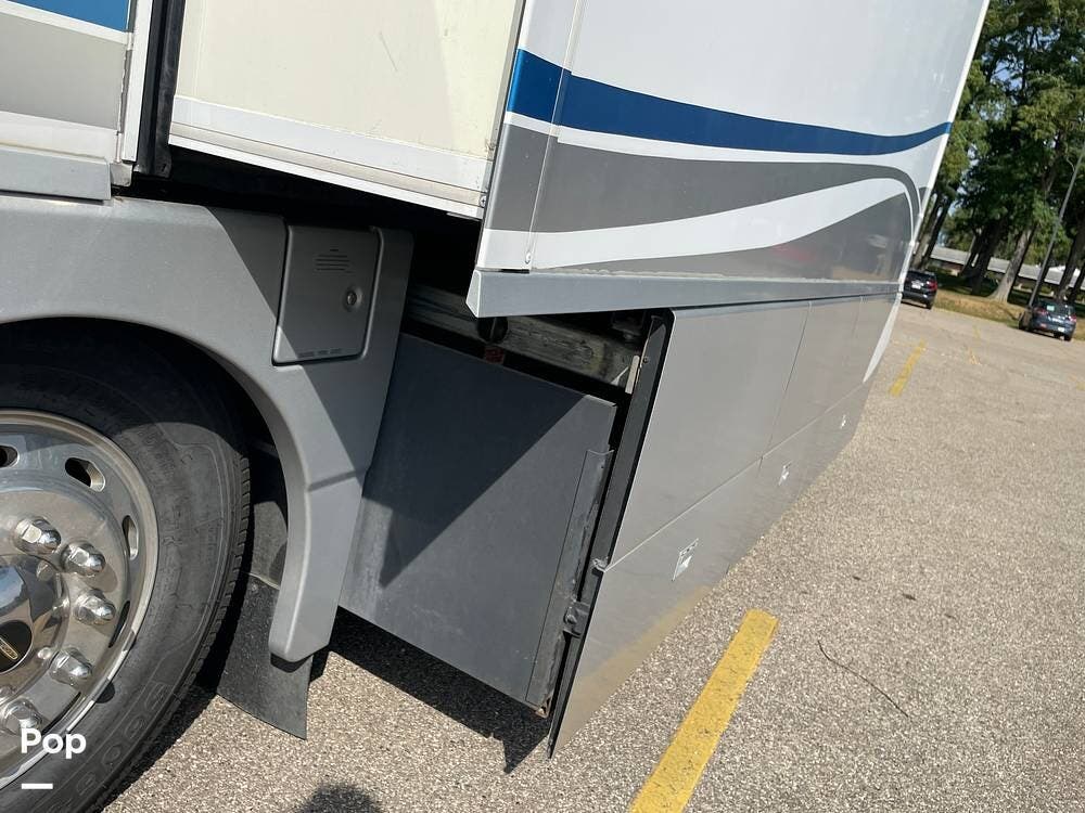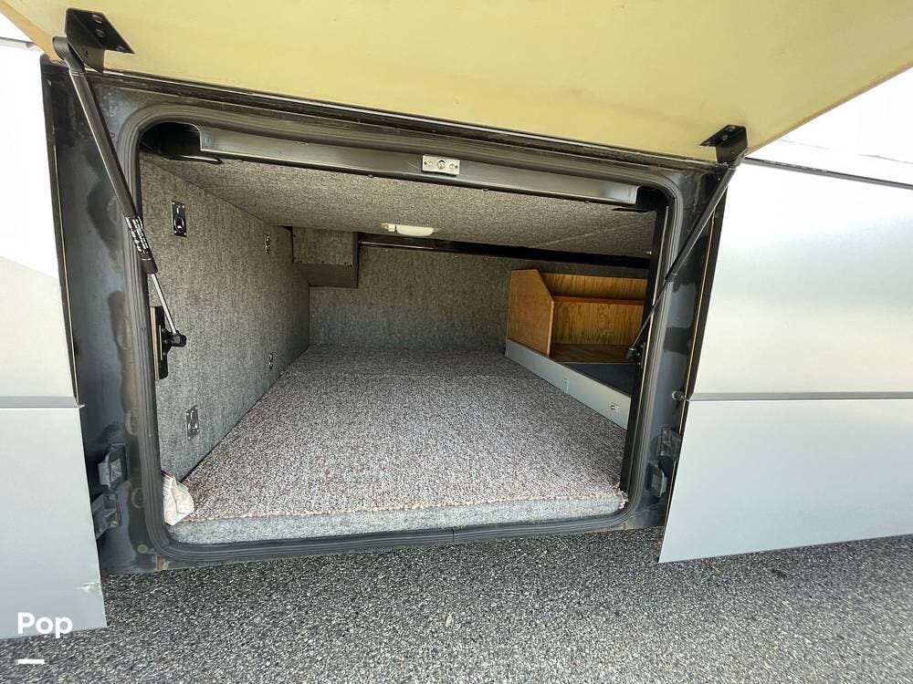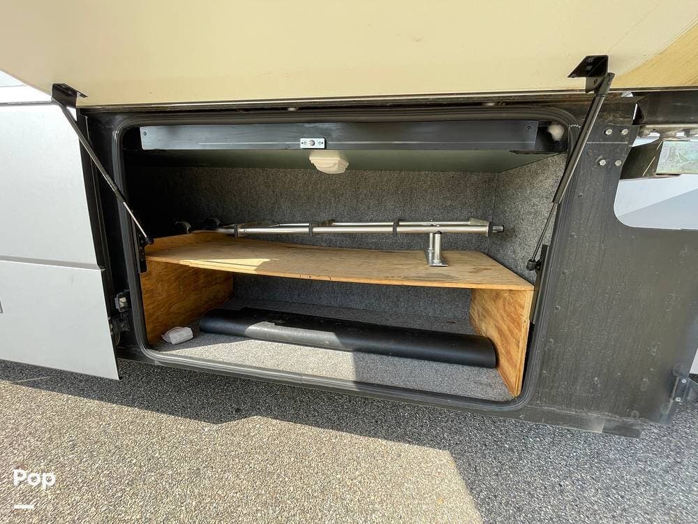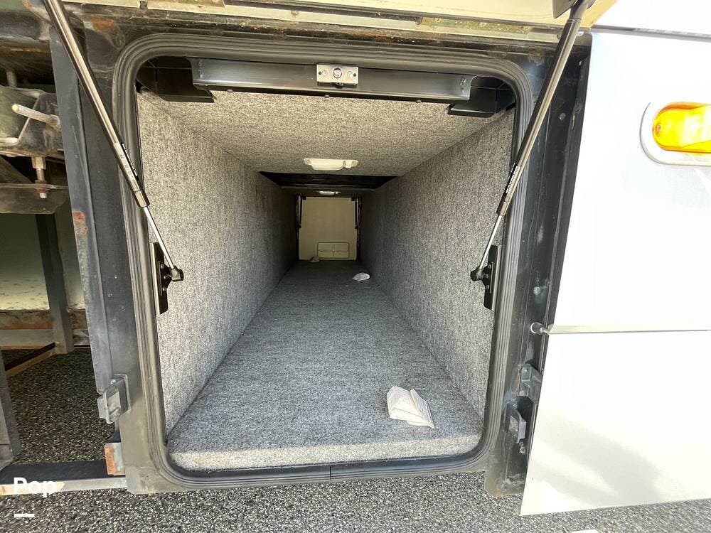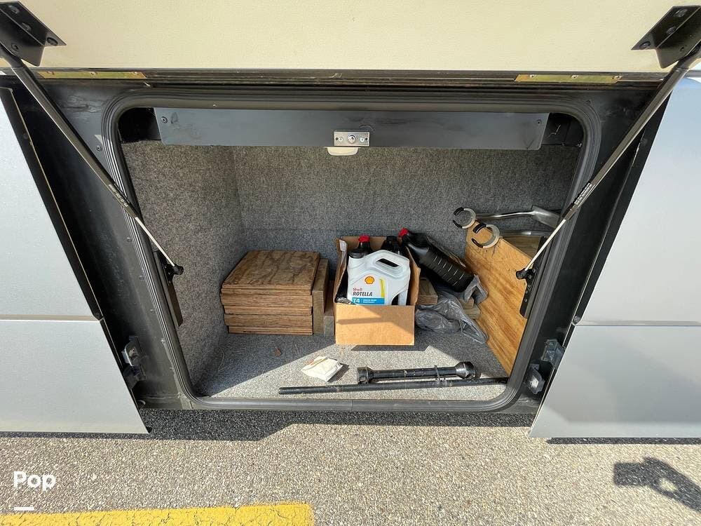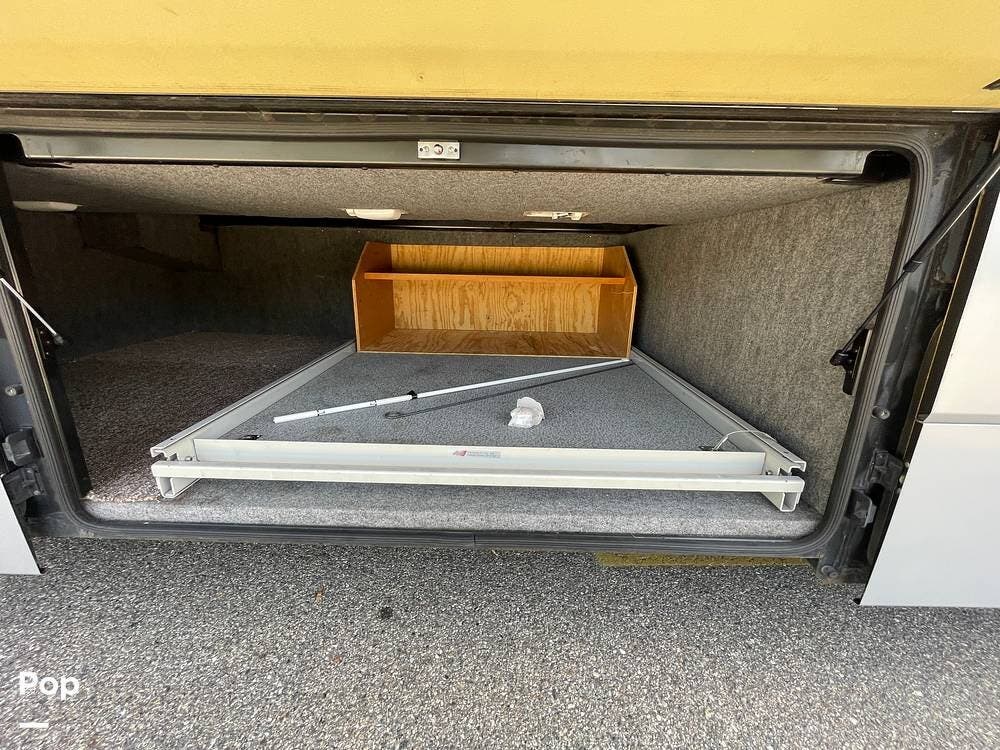It features a large amount of main storage (184.5 cu feet). The "StoreMore" Hydraulic Slideout System allows the full-size storage compartments to extend with the slideout room.