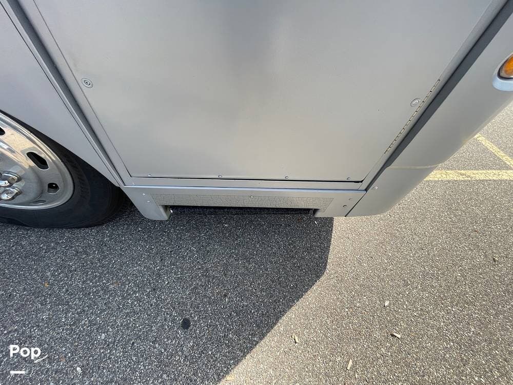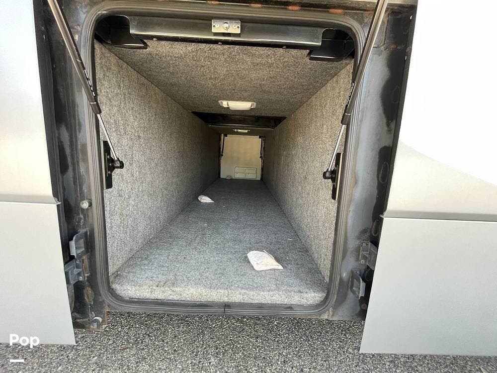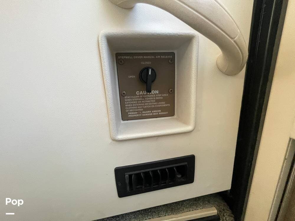 The living space is accessed from the front entry door located by the passenger seat. Electric entry steps extend to enter the interior.