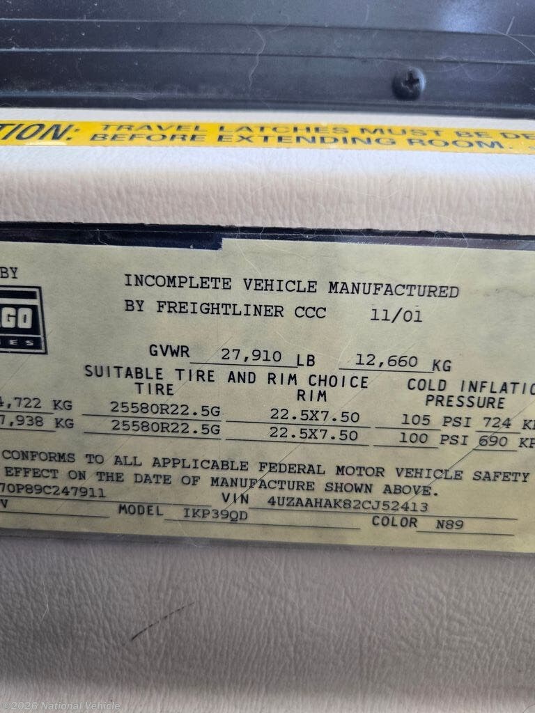 Request More Info on this 2002 Itasca Horizon 39QD Offered for sale by National Vehicle