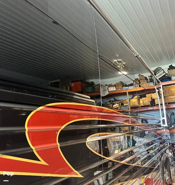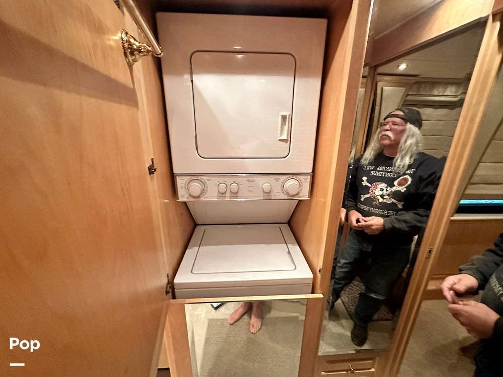 This RV boasts a washer/dryer, a microwave, an oven, a stove, a cool CD stereo, a TV, and a DVD player. Cruise comfortably during the hot summer with three air conditioning units, and stay cool outside under an attached awning. Breathe easy knowing that this Royale XLII has never had a cigarette or pets aboard.