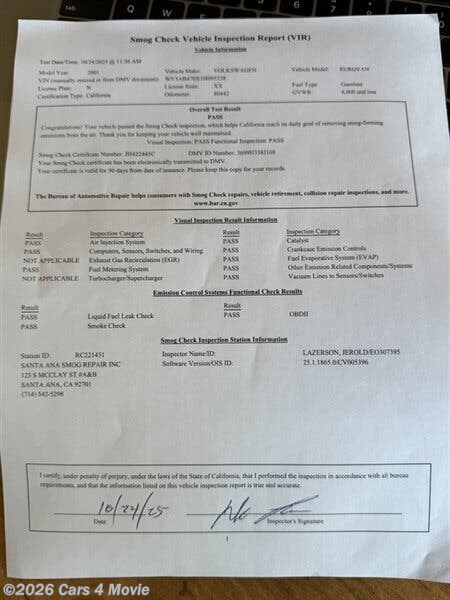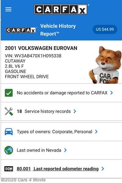 Request More Info on this 2002 Volkswagen EuroVan Offered for sale by Cars 4 Movie
