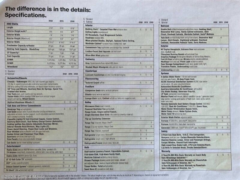 2002 Winnebago Rialta Features