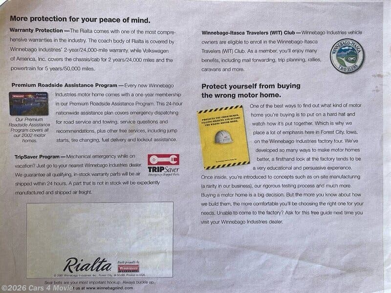Request More Info on this 2002 Winnebago Rialta Offered for sale by Cars 4 Movie