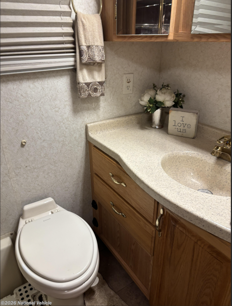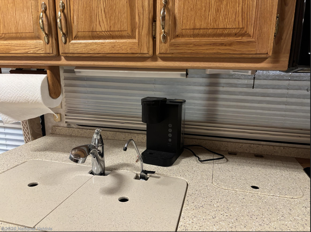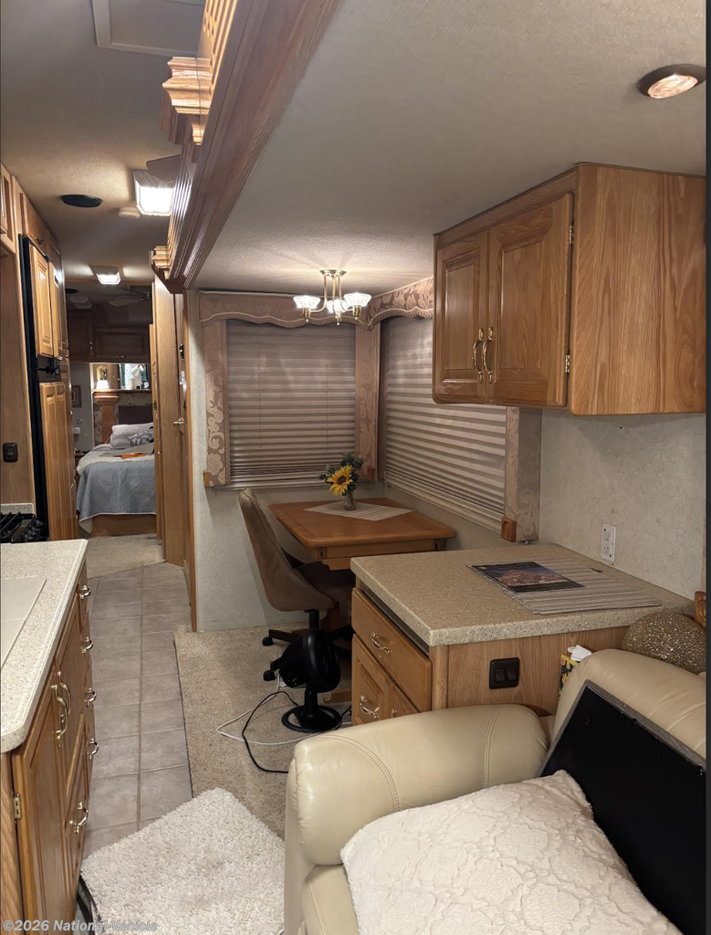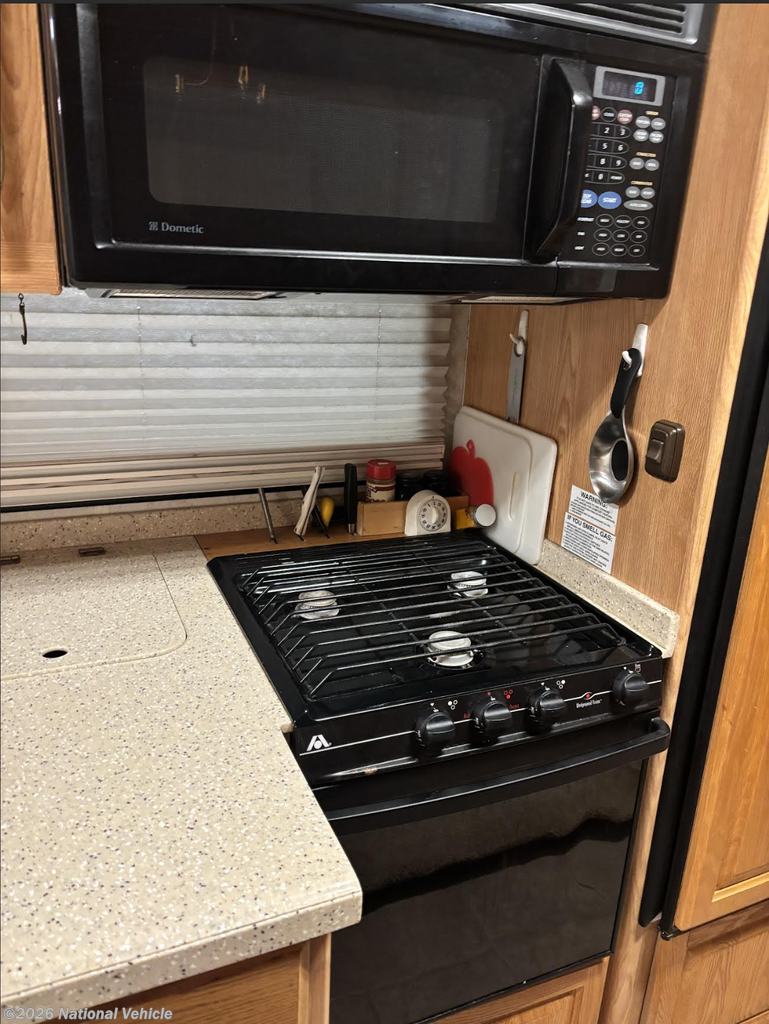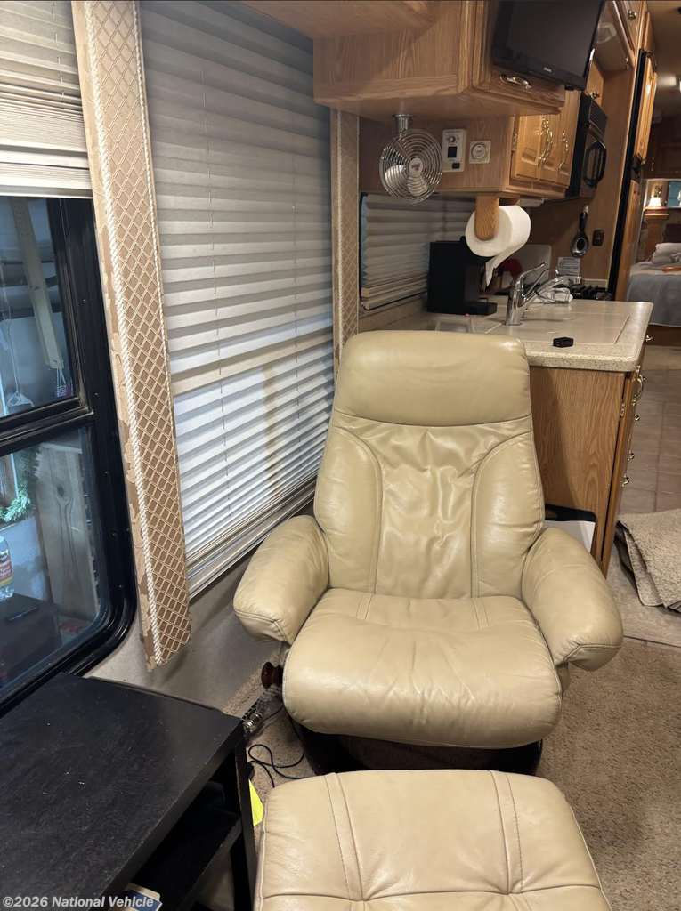Inside, the coach welcomes you with a warm, functional layout designed for comfort and usability. The gourmet galley features a self-lighting stove, generous drawer storage, and ample pantry space, making meal prep effortless whether you?re on a weekend escape or a cross-country journey. The living area is both inviting and practical, offering a DVD/VCR combo, ceiling fan, computer desk, and a large passenger-side window that fills the space with natural light, slide topper.