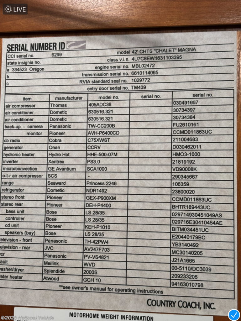 Request More Info on this 2003 Country Coach Magna Chalet Offered for sale by National Vehicle