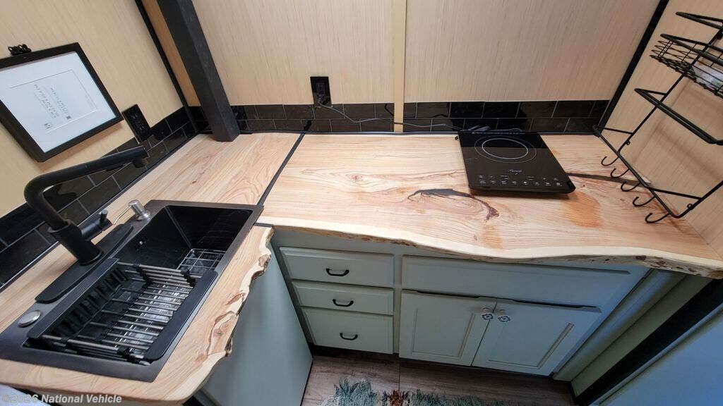 Step inside and you?ll immediately feel the calm, minimalist vibe. Natural textures, clean lines, and thoughtful design transform this compact Class B+ into a serene mobile workspace and living retreat. The custom live-edge hickory kitchen counter is a true centerpiece-warm, organic, and unlike anything you?ll find in a standard RV.