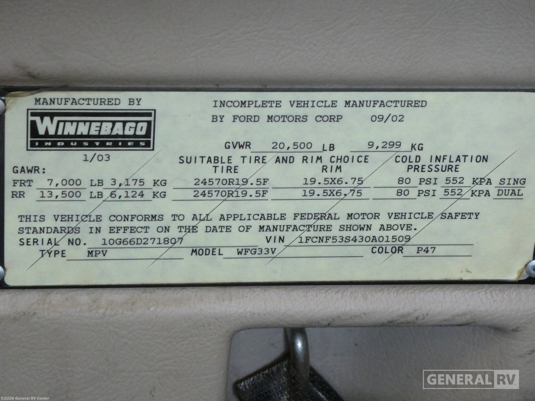 Request More Info on this 2003 Winnebago Adventurer 33V Offered for sale by General RV Center