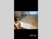 Step inside and you’re greeted by a warm, welcoming layout. The living area slide-out opens up a spacious retreat featuring a plush sleeper sofa, a cozy dinette for four, and panoramic windows that invite the outdoors in. The kitchen is chef-ready, complete with a double-door fridge, oven, microwave, and plenty of counter space for campsite feasts or midnight snacks.