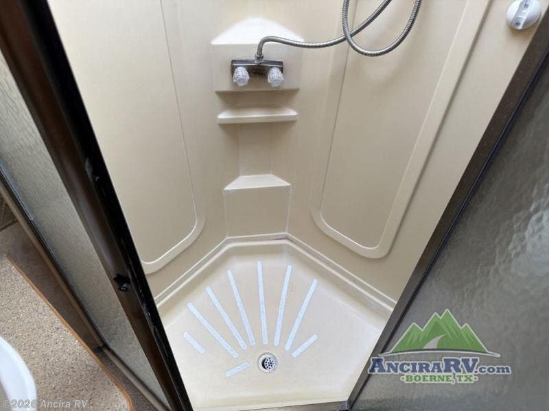 Triple Slide, Rear Queen Bed Slideout w/2 Barrel Chairs, Slideout Storage Space, Neo-Angle Shower w/Seperate Stool Room, Refrigerator, Double Kitchen Sink, 3 Burner Range, Booth Dinette & Sofa Slideout, 3rd Barrel Chair Up Front and More.
