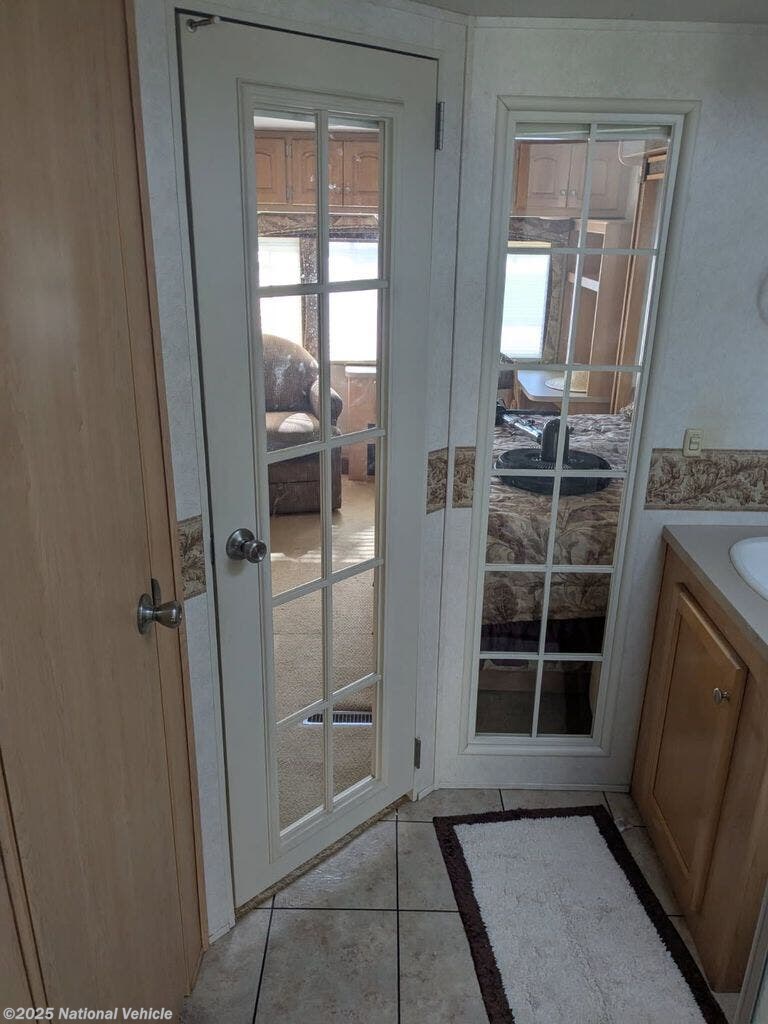 Step inside to find a thoughtfully designed interior with spacious slide-outs that open up the living area for relaxation and entertaining. The main lounge features plush seating, a convertible sofa, and a dinette for meals or family gatherings. The fully equipped kitchen includes ample counter space, cabinetry, a refrigerator, microwave, and range, making it easy to prepare meals on the go. Toward the rear, the private master suite offers a comfortable queen bed, generous wardrobe storage, and direct access to the full bath with shower, giving you everything you need for extended stays.