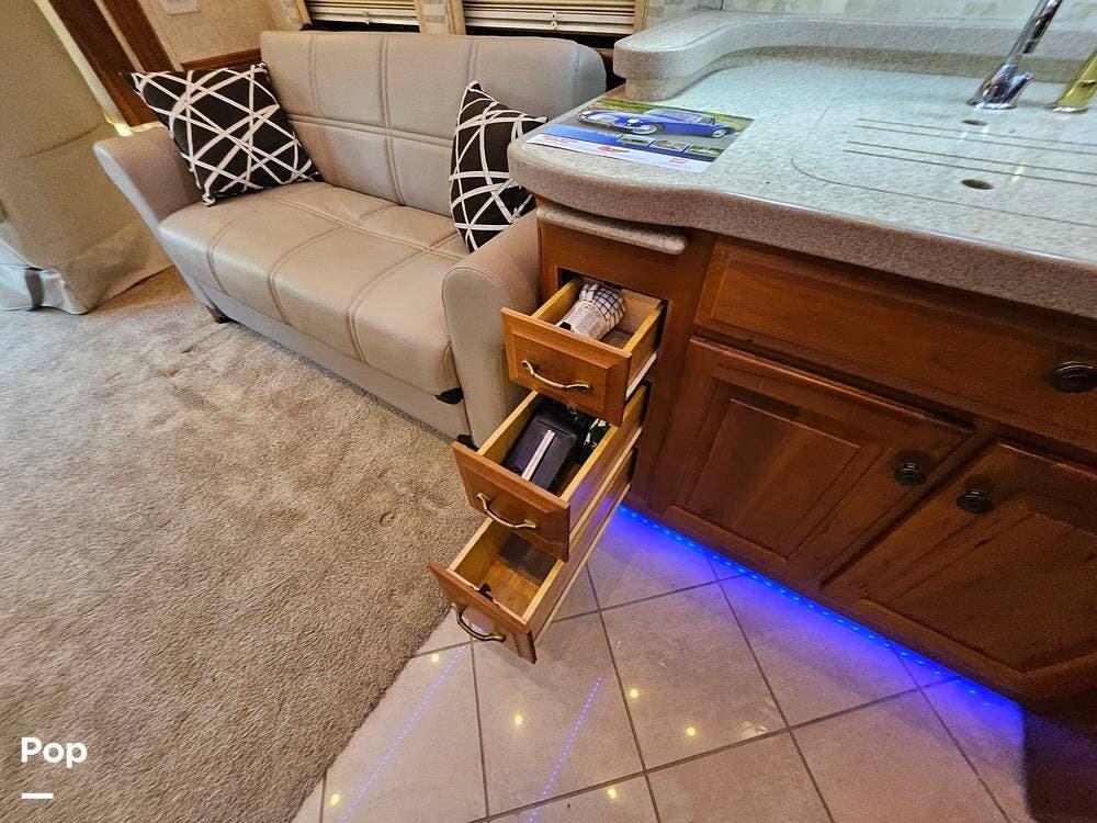 The living area has a pop-up hide-away TV, sofa sleeper, and love seat sleeper.