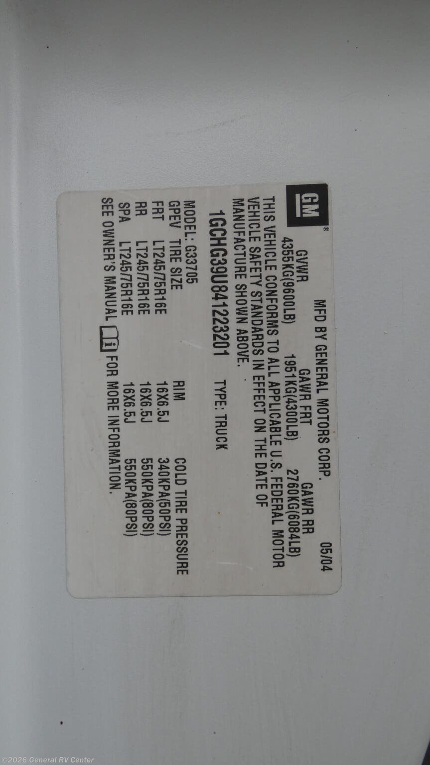 - VIN1GCHG39U841223201