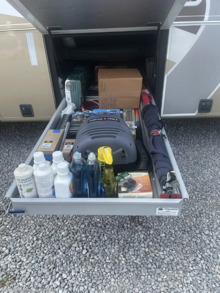 Power systems have also been upgraded with four AGM house batteries (instead of the original two) plus two AGM chassis batteries, all newer. Protection and electrical reliability are enhanced with both an external surge protector and a newly installed hard-wired surge protector. Upgraded shades. Built in CB Radio.