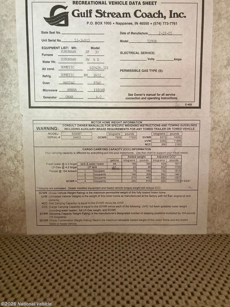 Request More Info on this 2005 Gulf Stream Conquest B Touring Cruiser 5290 Offered for sale by National Vehicle