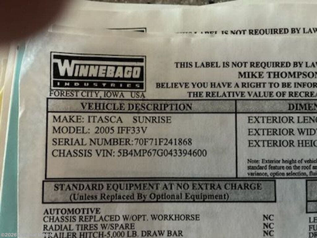 Request More Info on this 2005 Itasca Sunrise 33V Offered for sale by National Vehicle