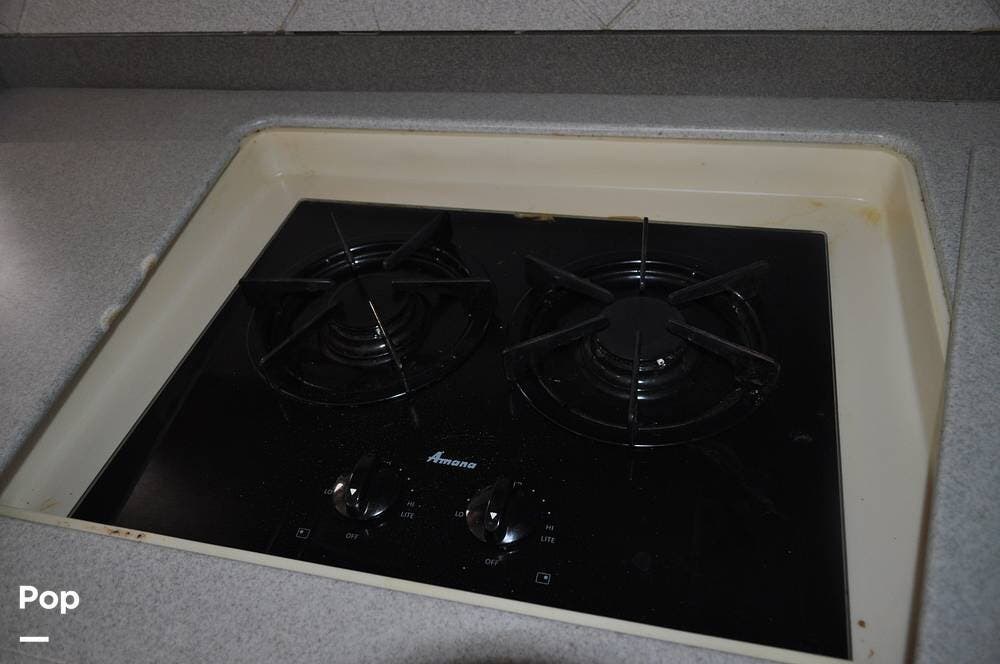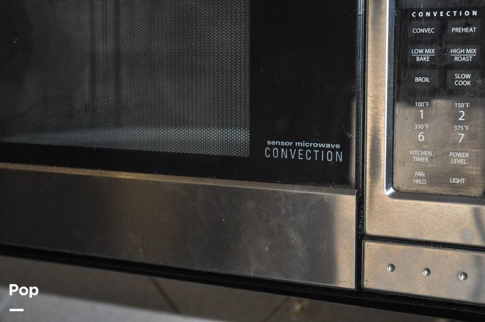 It is fully equipped with a solid-surface countertop, a 3-burner stove, a convection microwave, and a large four-door refrigerator for all your culinary needs.