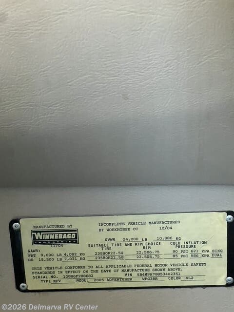 Request More Info on this 2005 Winnebago Adventurer 38R Offered for sale by Delmarva RV Center