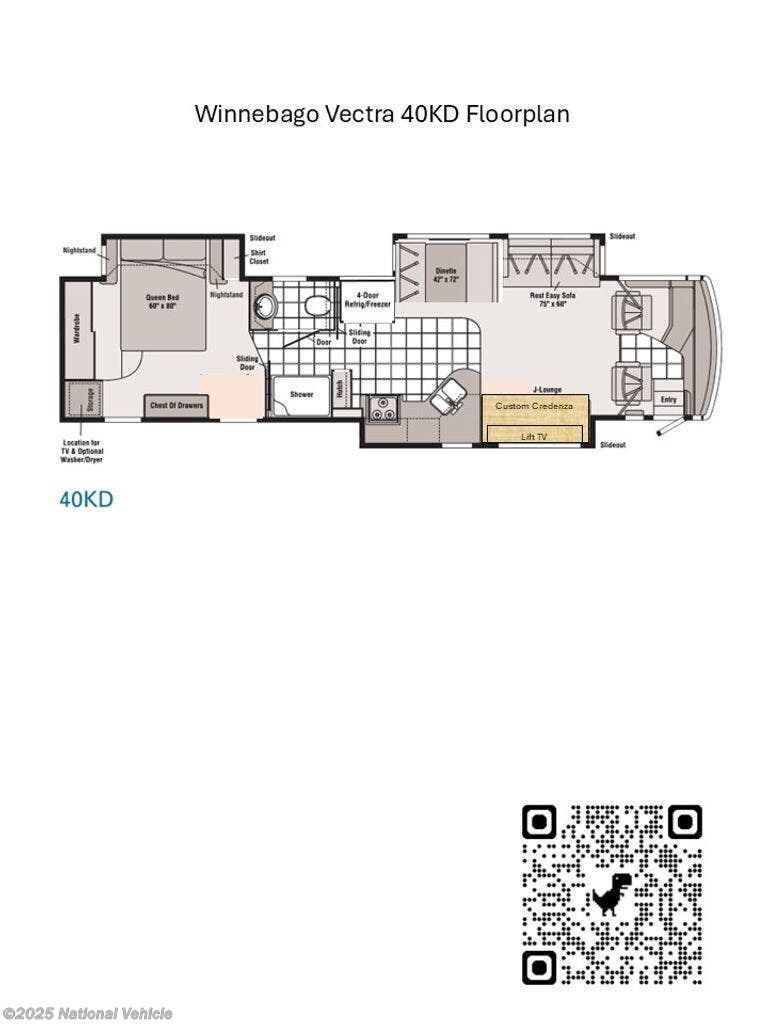 Imagine driving off to all of your favorite destinations in this Winnebago Vectra Class A coach. Model 40KD offers triple slide outs for extra interior space, plus so much more!
