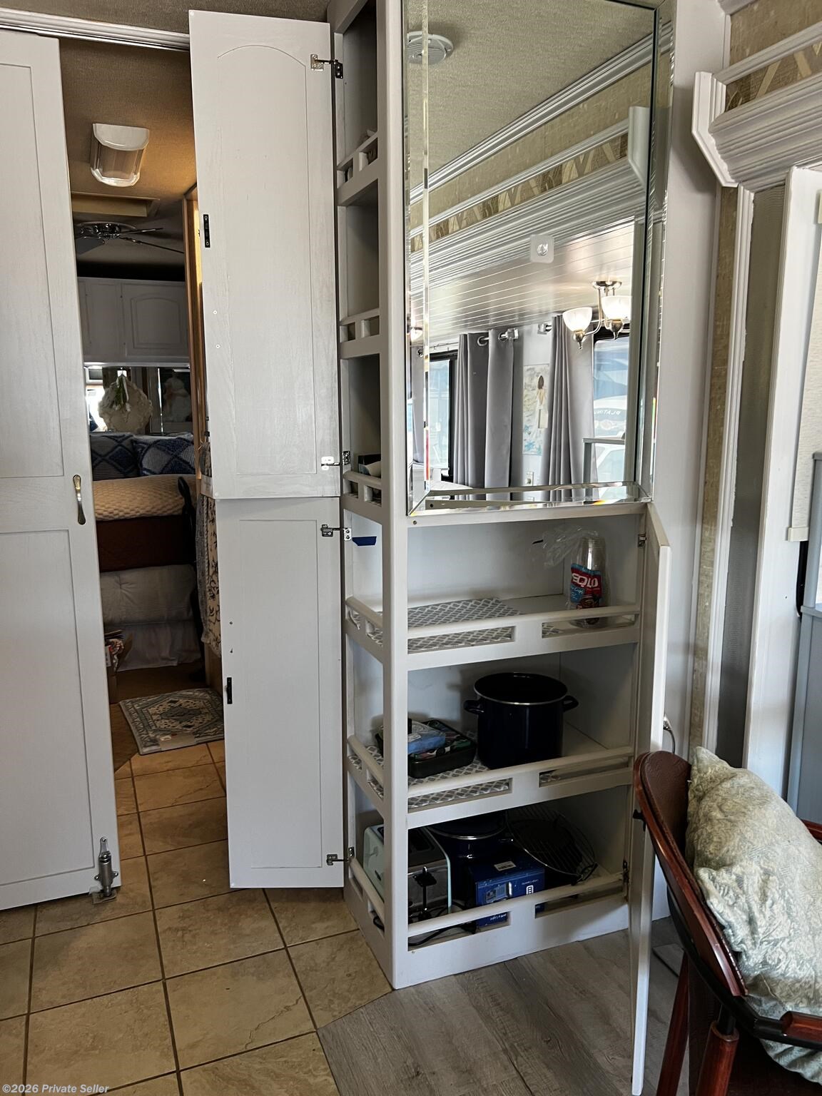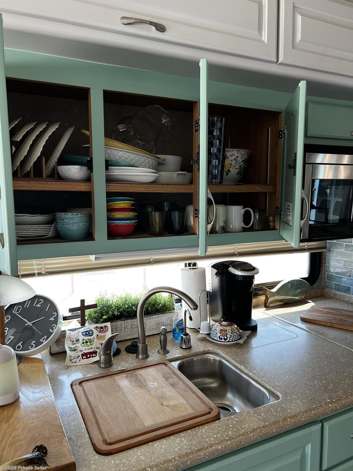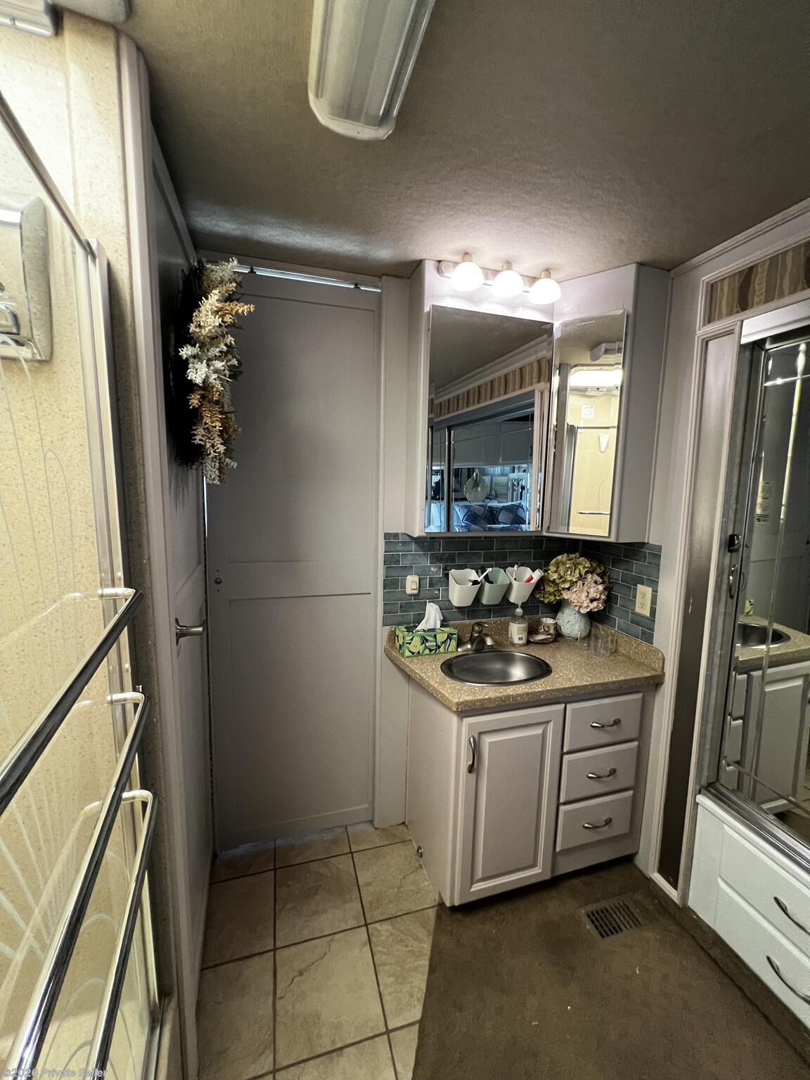 Ceiling Fan, Fireplace, Glass Shower Door, Kitchen Sink, Medicine Cabinet, Non-Smoking Unit, Overhead Cabinetry, Pantry, Pocket Door(s), Power Seats, Queen Mattress, Roof Vents, Shower, Table and Chairs, Toilet, Vanity
