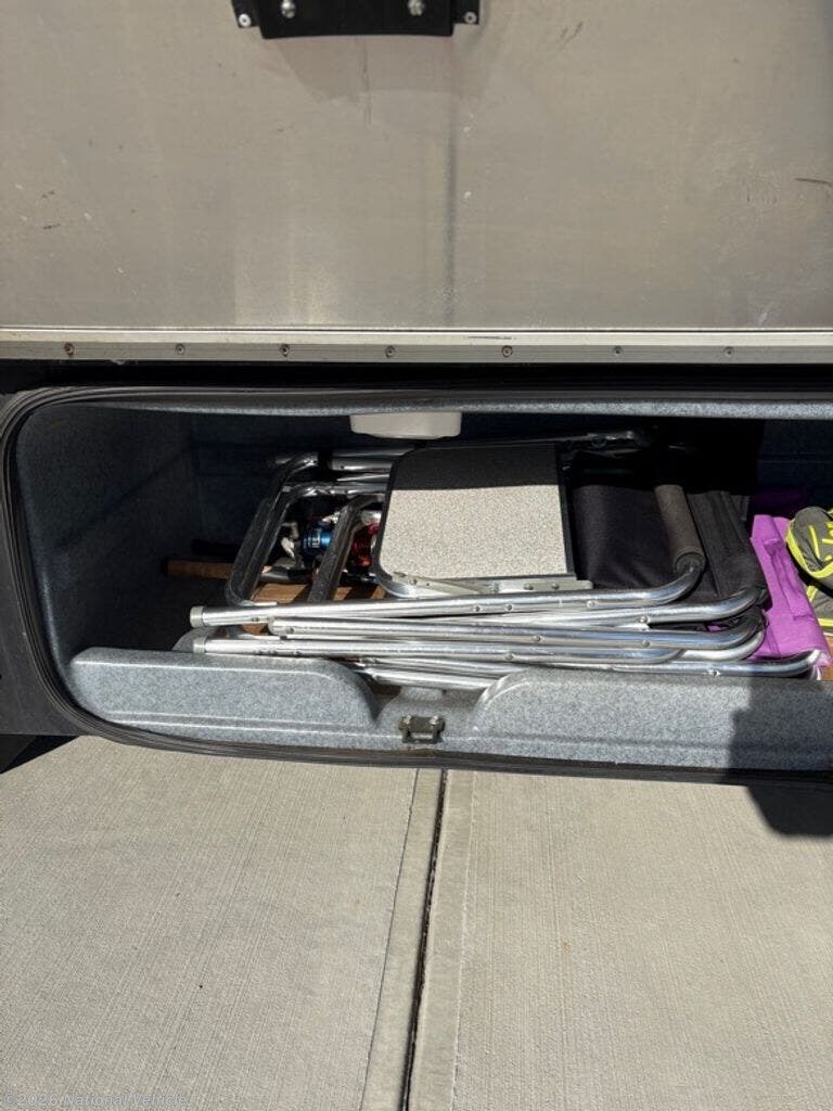 Full pass-through exterior storage gives you room for all your gear, and the rear receiver hitch adds versatility for towing. LP capacity is 85 lbs., providing excellent off-grid capability.
