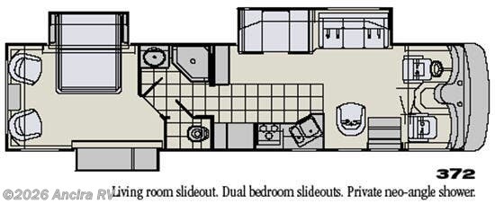 Triple Slide, Rear Queen Bed Slideout w/2 Barrel Chairs, Slideout Storage Space, Neo-Angle Shower w/Seperate Stool Room, Refrigerator, Double Kitchen Sink, 3 Burner Range, Booth Dinette & Sofa Slideout, 3rd Barrel Chair Up Front and More.