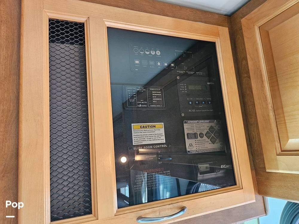 This Class A diesel motorhome comes with three slide-outs, featuring a 300HP Caterpillar C7 engine on a Freightliner chassis.