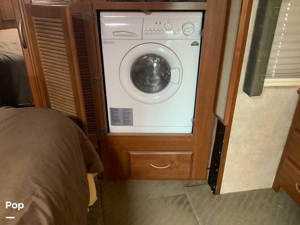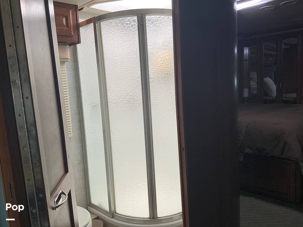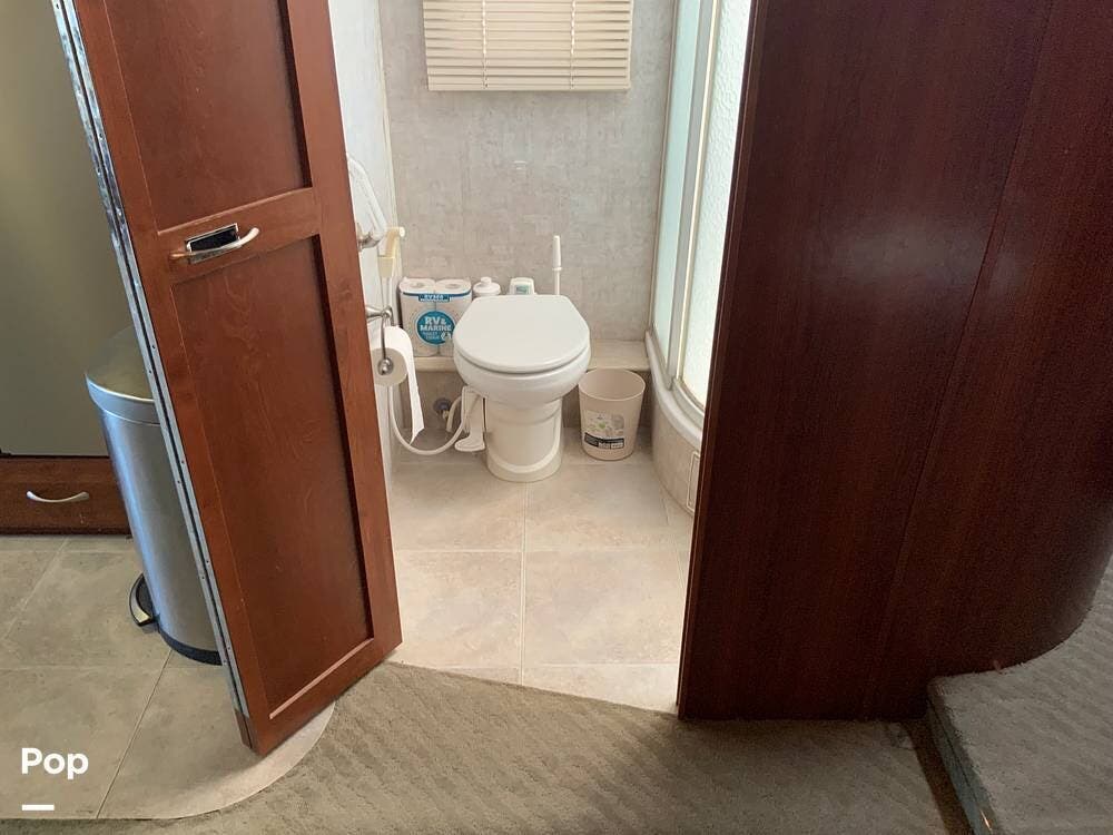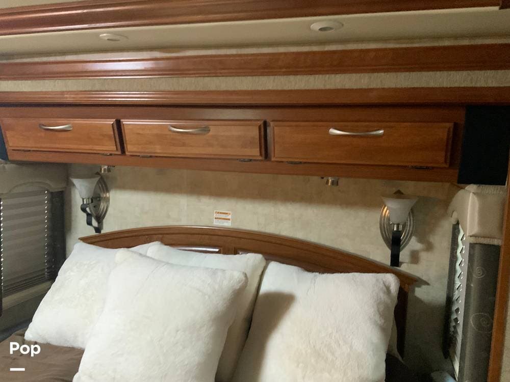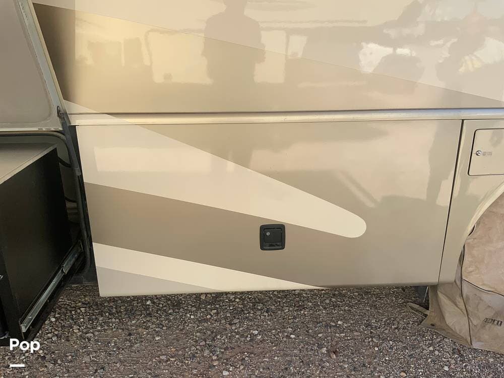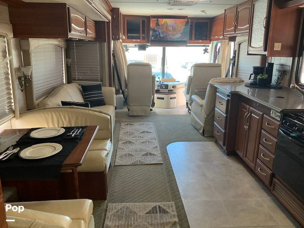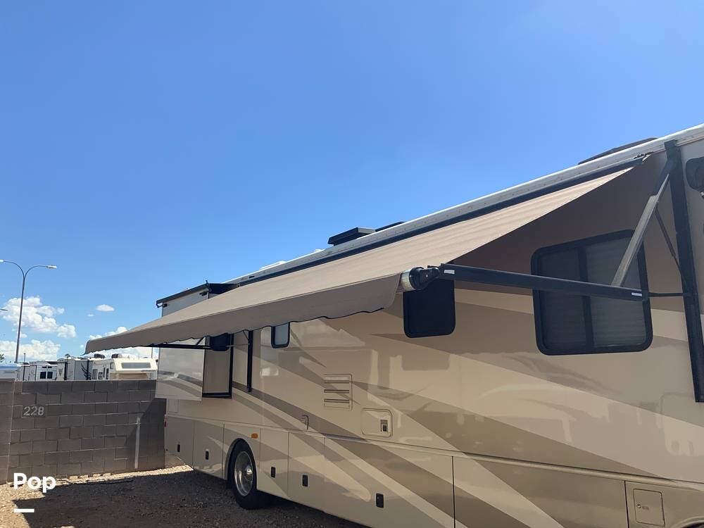 The diesel pusher configuration provides a quiet and stable ride, with the engine positioned in the rear for improved weight distribution and reduced cabin noise. The air ride suspension and air brakes make for smoother handling, even when towing a vehicle.