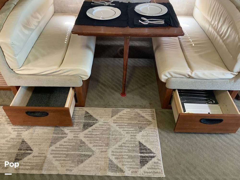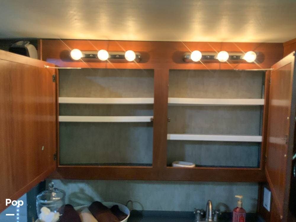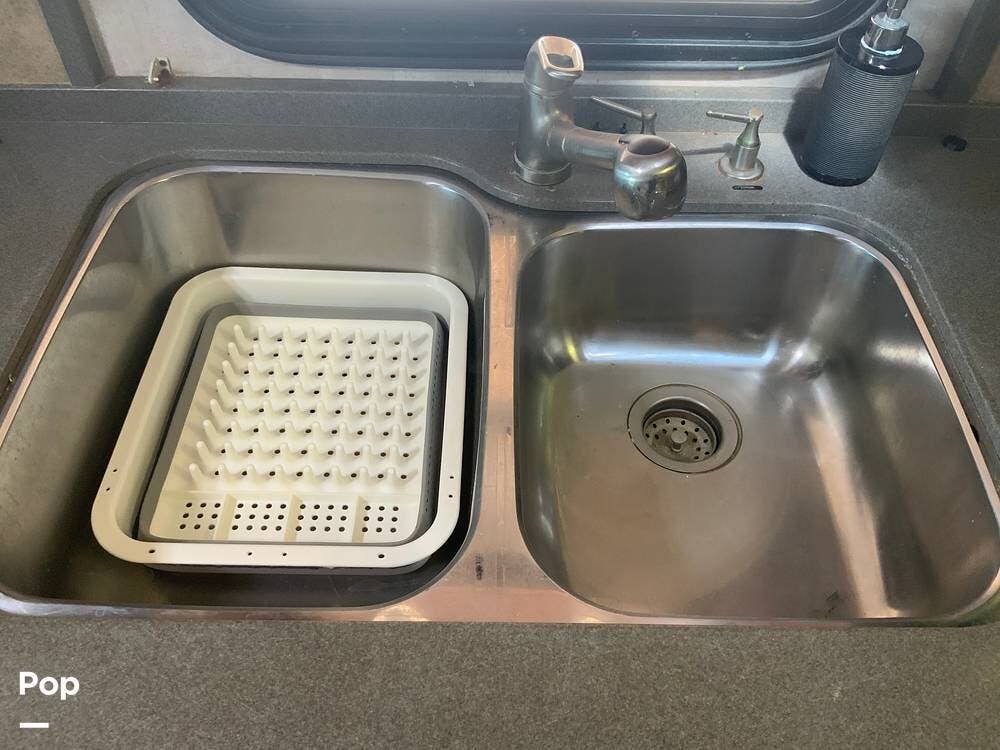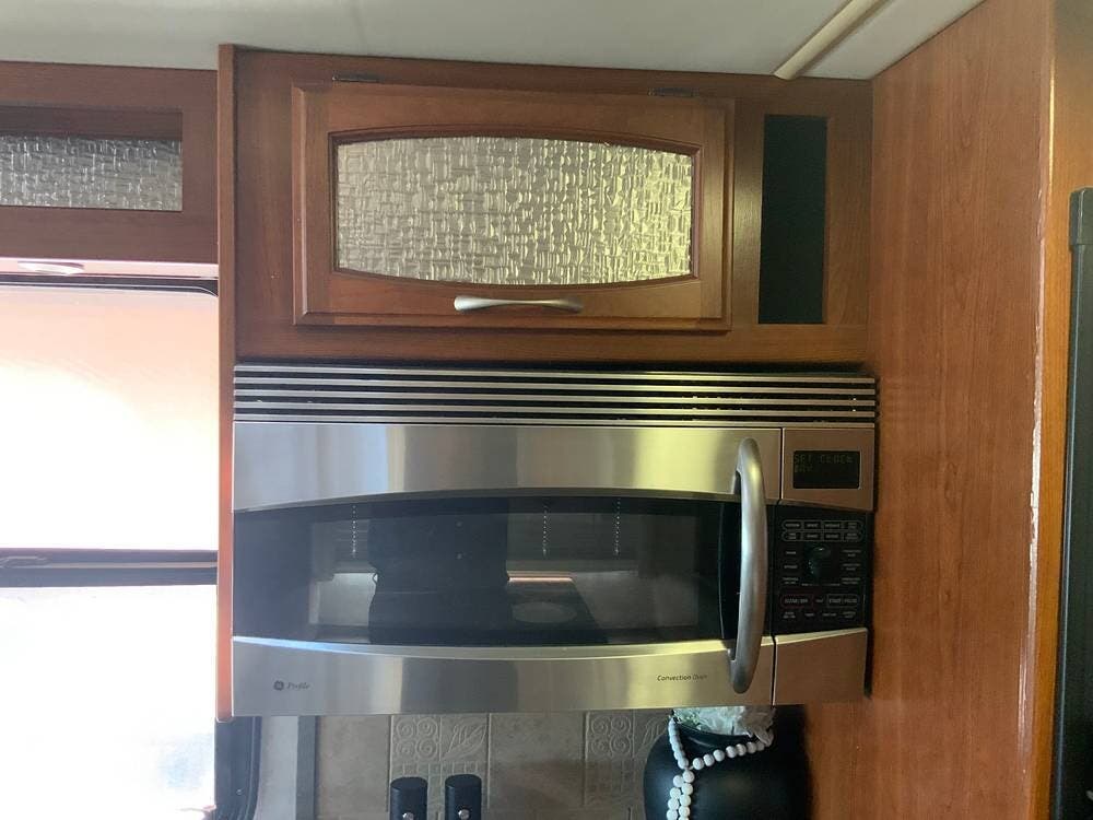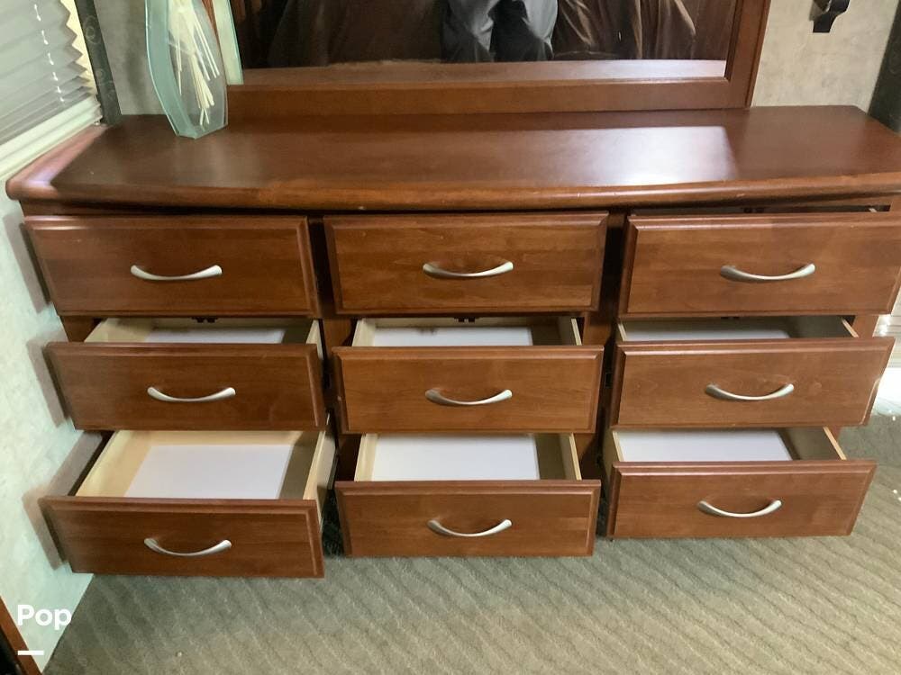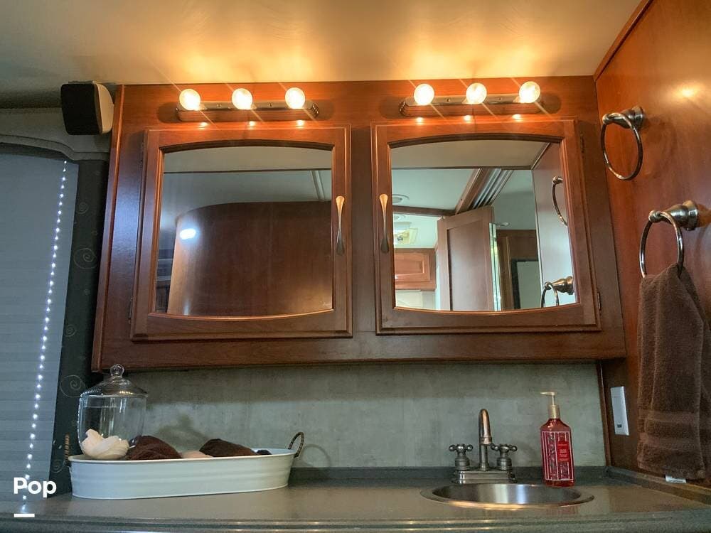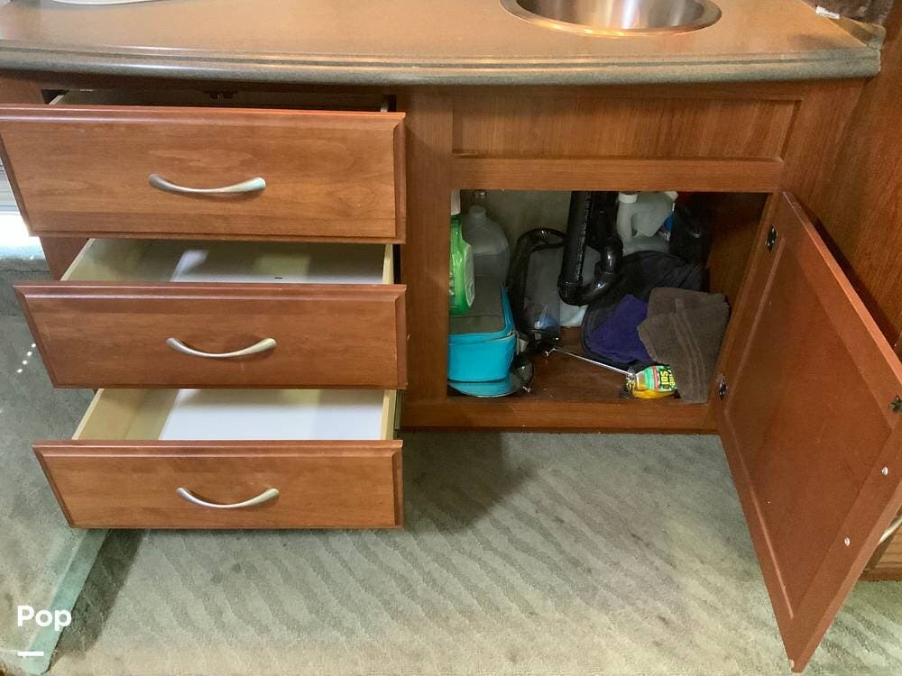 The diesel pusher configuration provides a quiet and stable ride, with the engine positioned in the rear for improved weight distribution and reduced cabin noise. The air ride suspension and air brakes make for smoother handling, even when towing a vehicle.