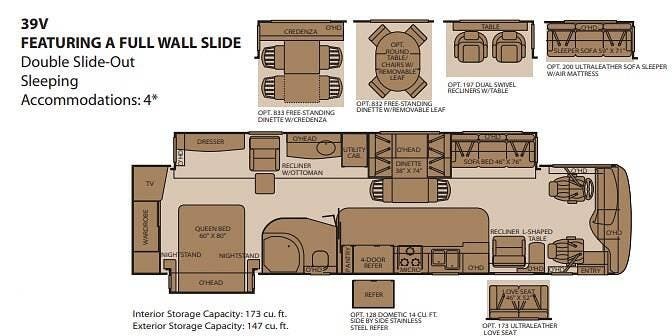 With an open floorplan made possible with a full side slideout and another for your queen size bed. Both give you a feeling of the openness of the home.
