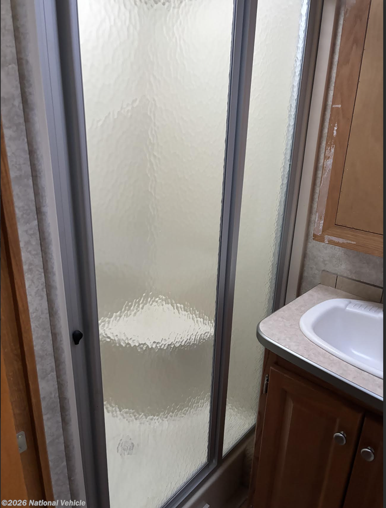 The Crescendo 8356 features a full bath with a large shower, toilet, and vanity, ensuring all your needs are met with convenience and comfort.