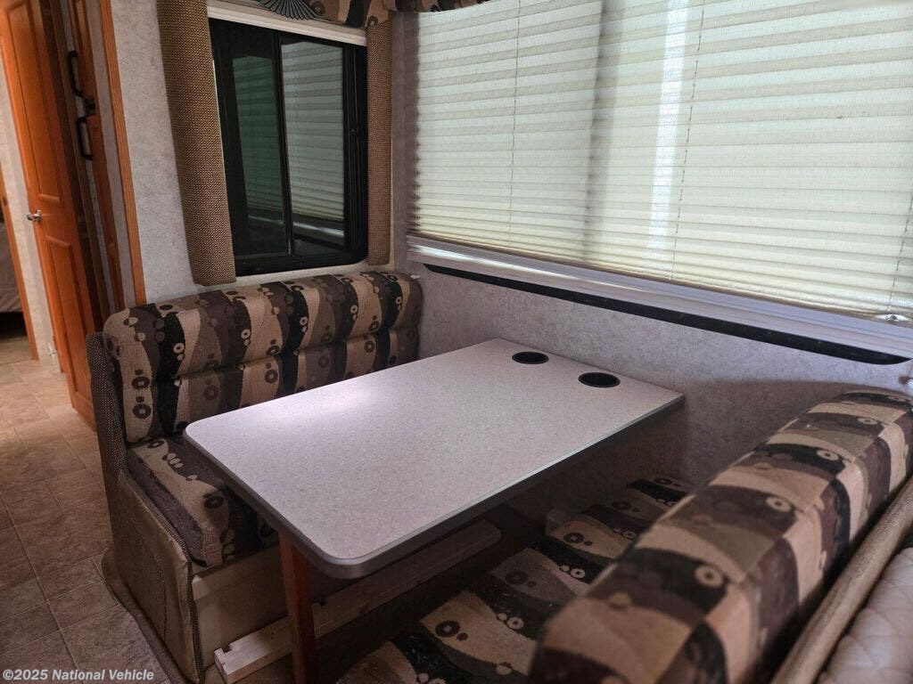 Step inside and take a look back at all of the convenient features that would make any journey enjoyable. The kitchen area features everything you need to prepare great meals on the go including a sink, a three burner range with microwave/convection oven, and a refrigerator/freezer. There is also plenty of storage for all of your dry and canned goods. Have a seat at the comfortable dinette, where you can enjoy meals with your family.