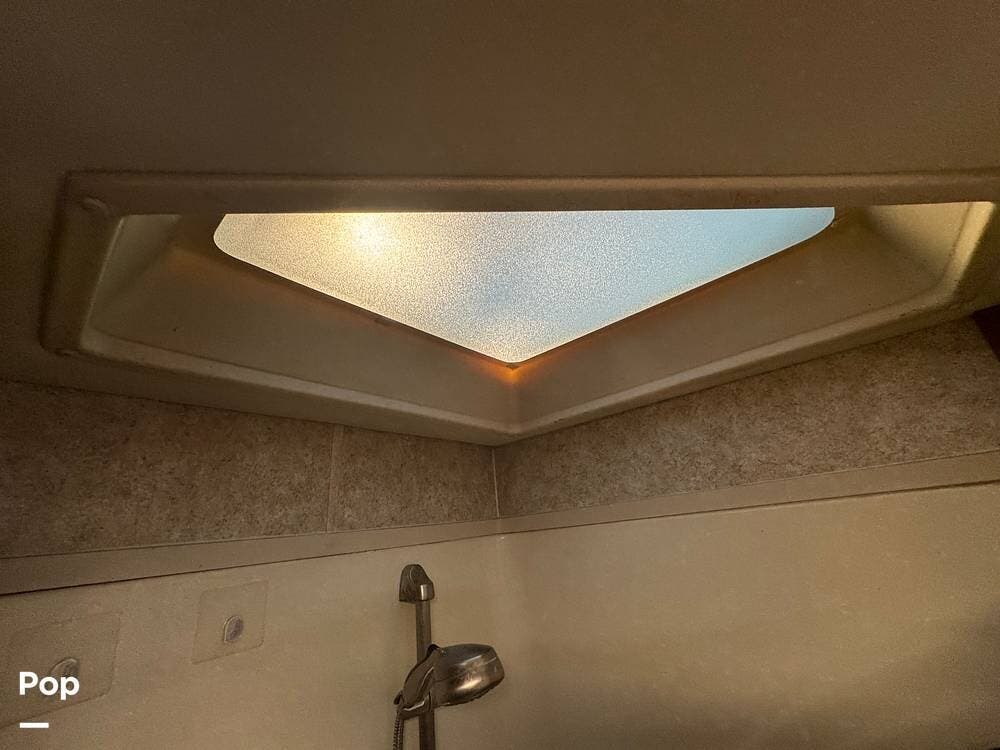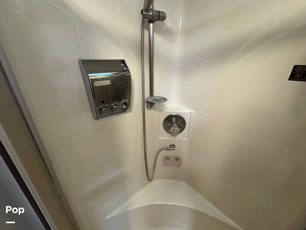 The rear bedroom is in the rear of the coach, has its own door, and is just behind the bathroom and shower areas.