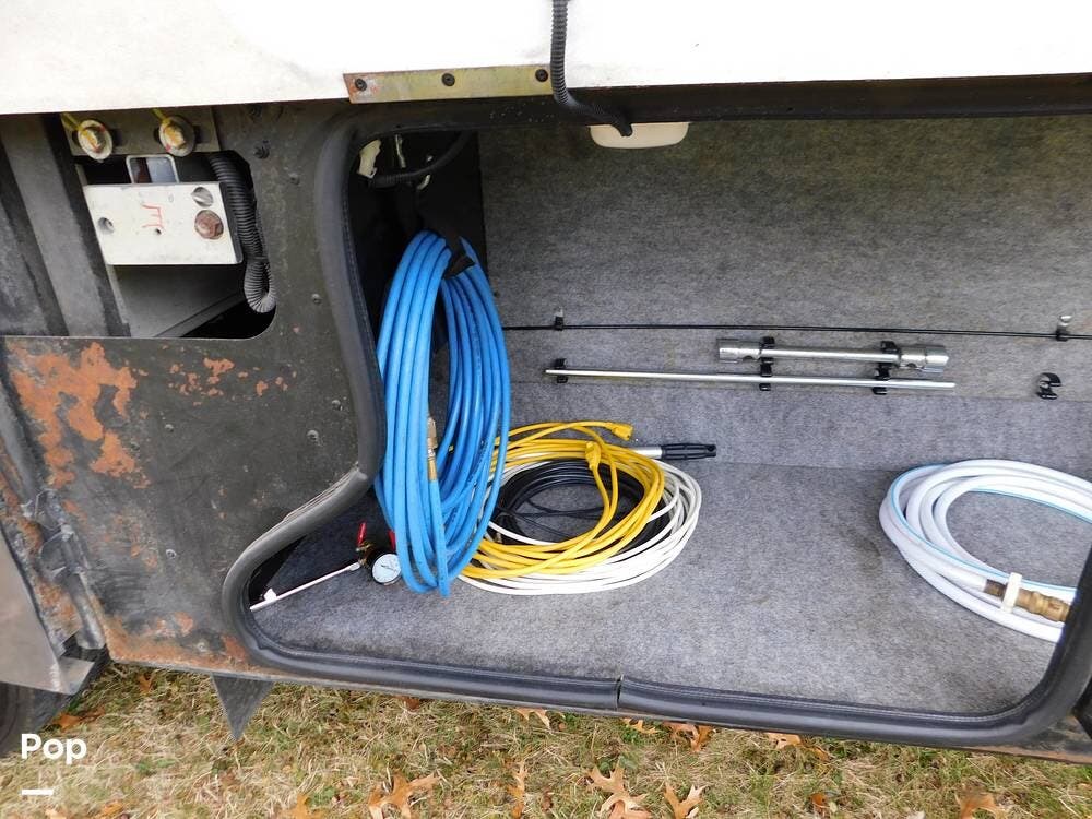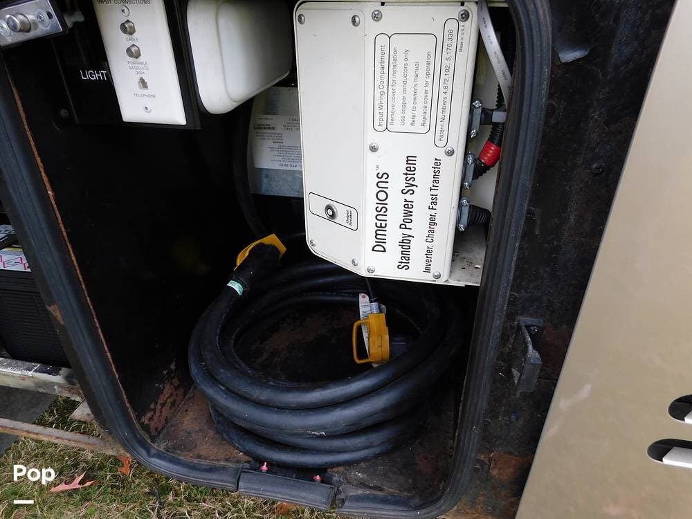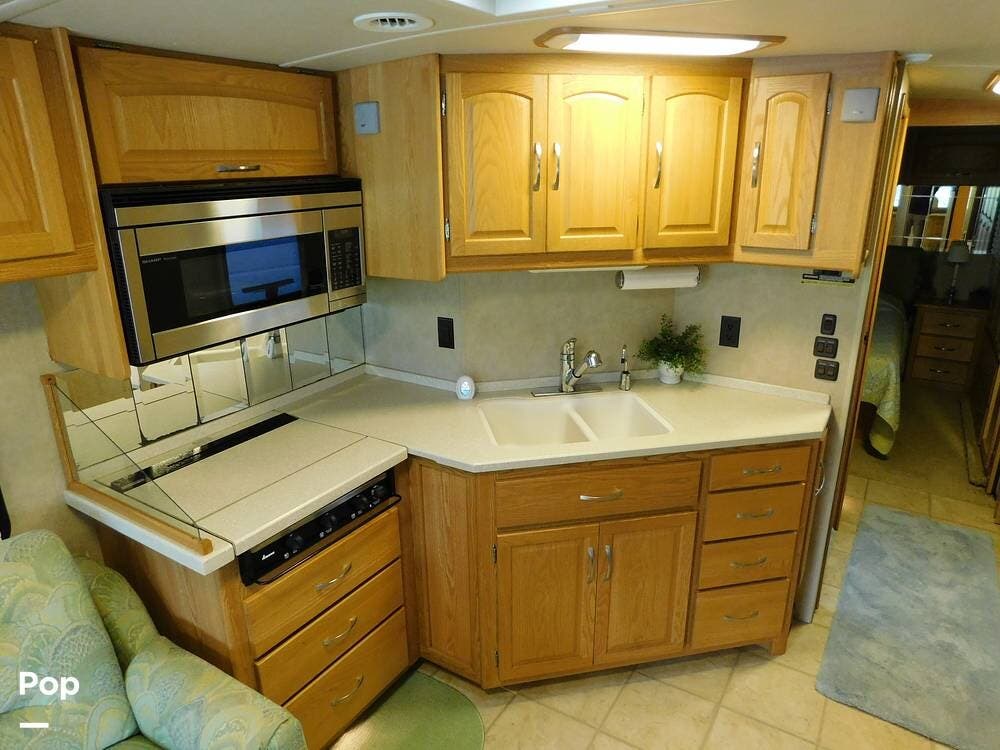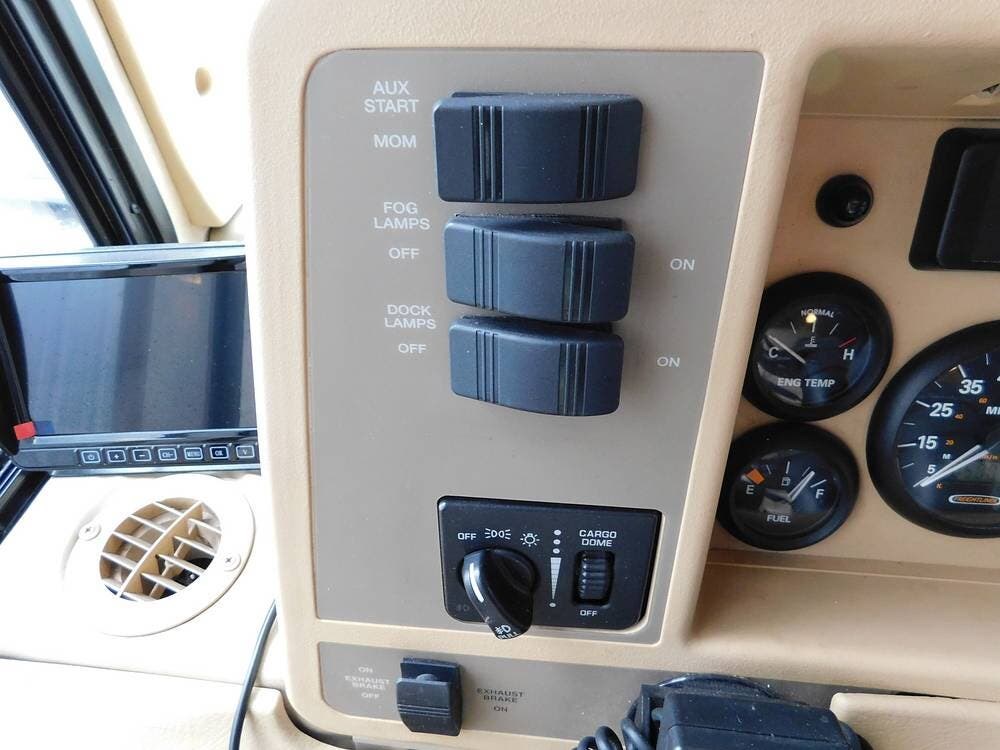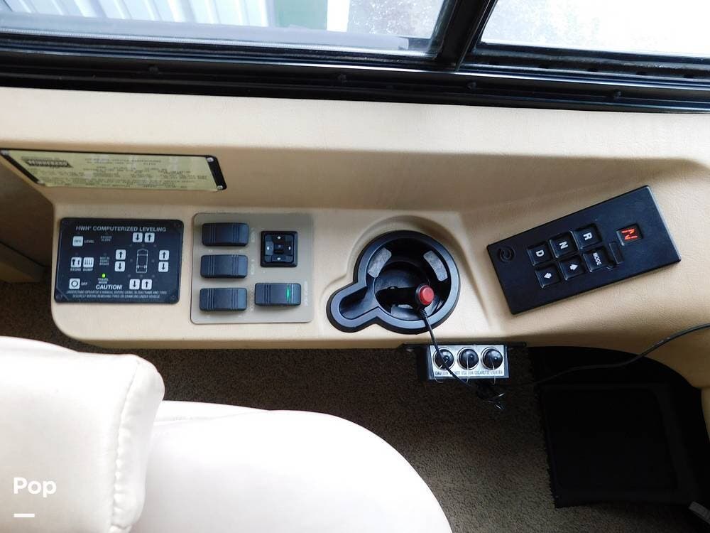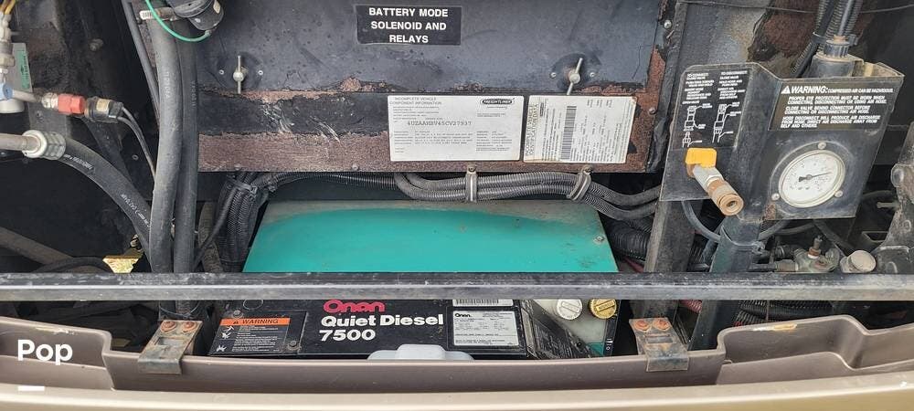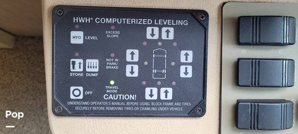 This 2006 Meridian 32T is equipped with essential amenities to enhance the RV lifestyle, such as ducted air conditioning with 2 AC units and central heating for climate control. It has a 7,500-watt generator for off-grid power, and a full entertainment system that includes a TV, DVD player, and sound system. The coach also features an automatic leveling system and a power awning.